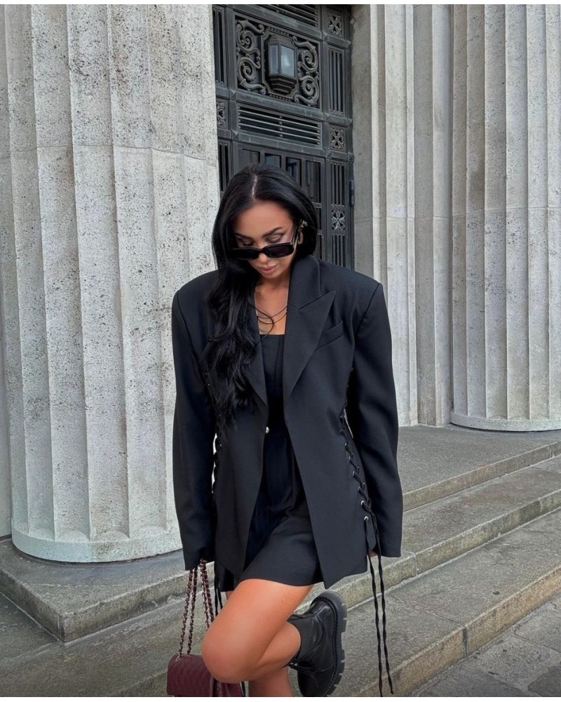 Marynarka bomberka to nowoczesne połączenie klasycznej elegancji z nutą streetwearowego luzu. Luźny krój zapewnia komfort noszenia i swobodę ruchów, jednocześnie podkreślając modny, niebanalny charakter stylizacji. Model wyróżnia się oryginalnym fasonem inspirowanym bomberką, ale zachowuje eleganckie linie marynarki, dzięki czemu sprawdzi się zarówno w zestawach casualowych, jak i bardziej formalnych. To wyjątkowy element garderoby, który możesz nosić na wiele sposobów – do sukienek, spodni czy spódnic. Idealny wybór dla kobiet, które cenią stylowe i uniwersalne rozwiązania.