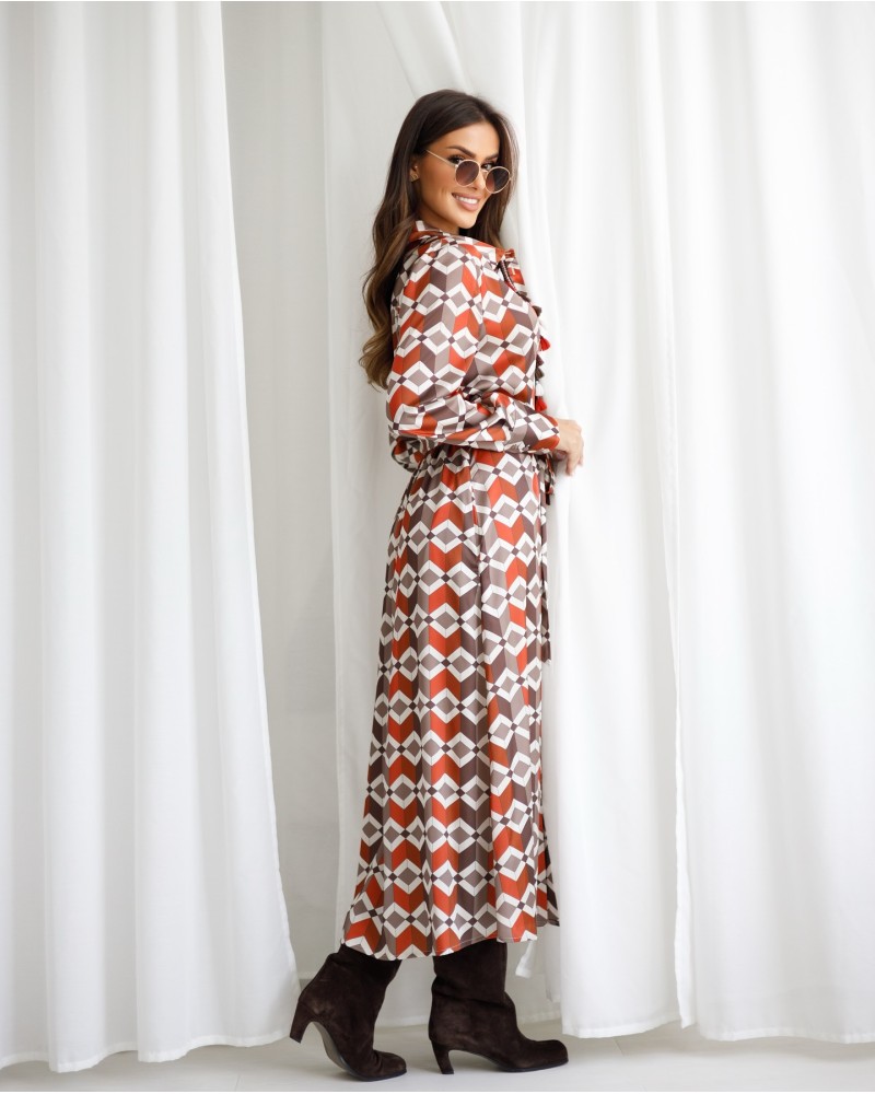 Sukienka koszulowa w geometryczne wzory By o la la...! chocomus z pomarańczowym