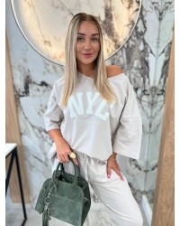 Luźny T-shirt z nadrukiem NYC i oversize’owym fasonem. Komfortowy i modny – idealny do stylizacji na co dzień.
