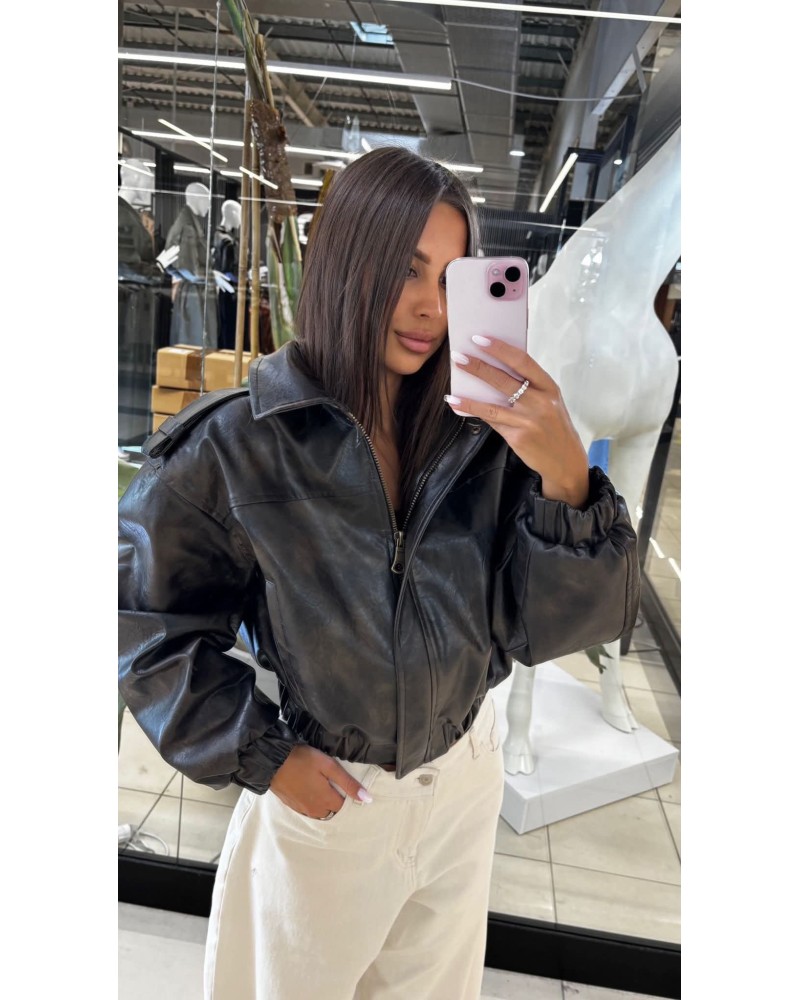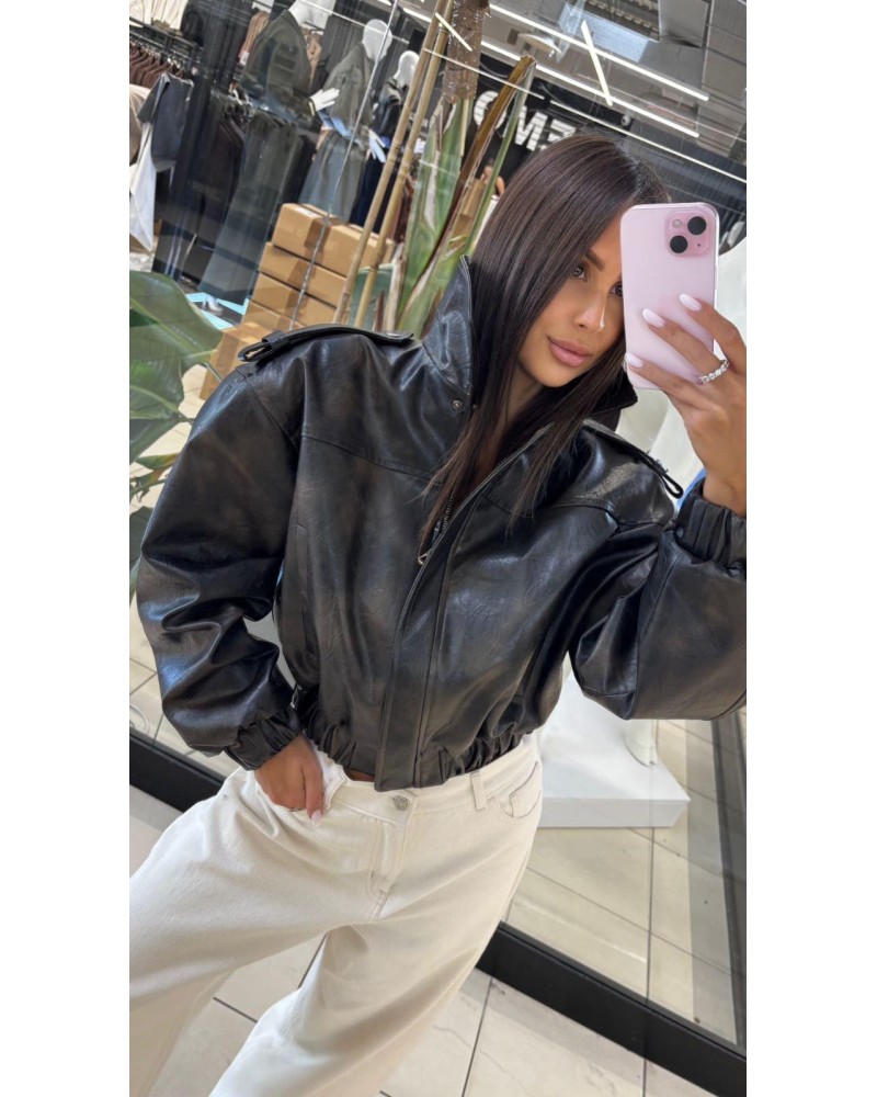 Stylowa skórzana bomberka o oversize’owym kroju, zapinana na suwak, idealna do casualowych i streetwearowych stylizacji.