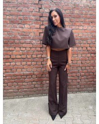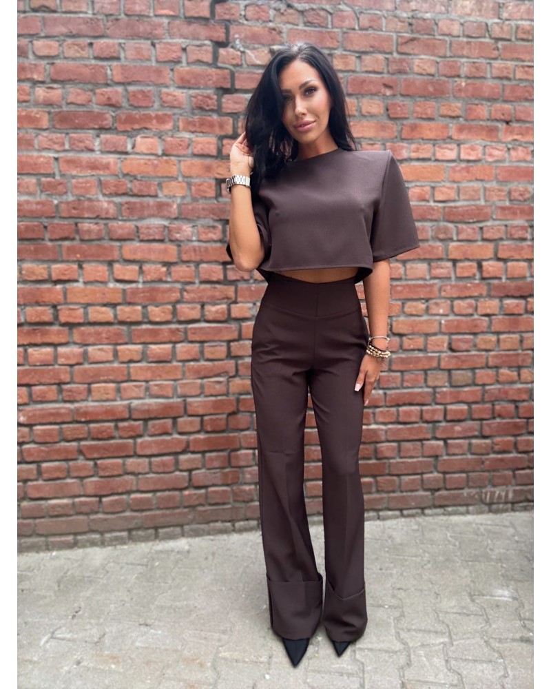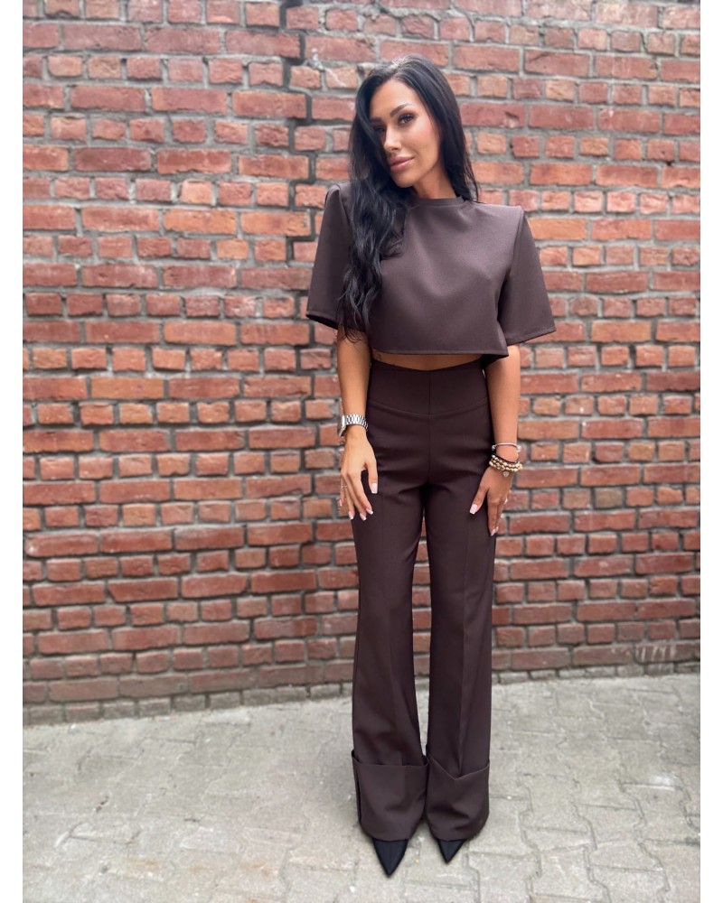 Czekoladowe eleganckie spodnie z wywijaną nogawką – odważne, nowoczesne i pełne charakteru.
