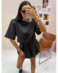 Top o pudełkowym kroju z krótkim rękawem, idealny do nowoczesnych i minimalistycznych stylizacji.