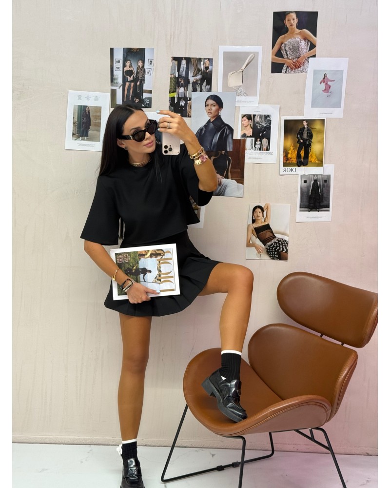 Nowoczesny top o pudełkowym kroju to propozycja dla kobiet ceniących prostotę połączoną z modowym charakterem. Luźniejszy fason z krótkim rękawem gwarantuje komfort noszenia, a jednocześnie prezentuje się niezwykle stylowo. Minimalistyczna forma sprawia, że top doskonale komponuje się zarówno ze spodniami, spódnicą, jak i szortami, tworząc bazę do wielu różnorodnych stylizacji – od codziennych po bardziej eleganckie. To uniwersalny element garderoby, który sprawdzi się o każdej porze roku.