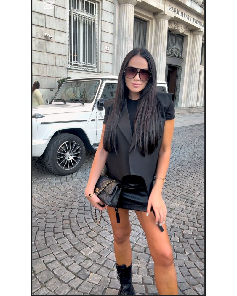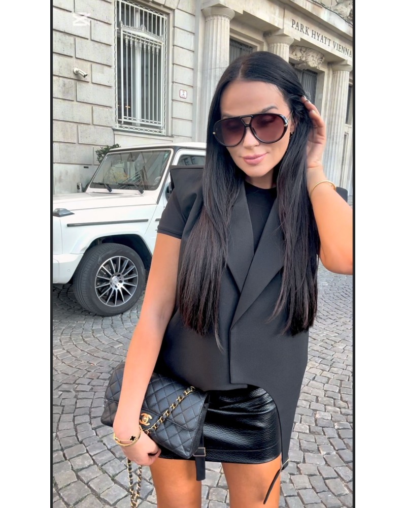 Postaw na elegancję w nowoczesnym wydaniu dzięki naszej czarnej kamizelce z ozdobnymi paskami z przodu. To wyjątkowy element garderoby, który łączy klasykę z modnym, minimalistycznym designem. Wykonana z wysokiej jakości tkaniny, pięknie układa się na sylwetce i dodaje stylizacji wyrafinowanego charakteru.