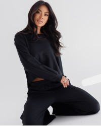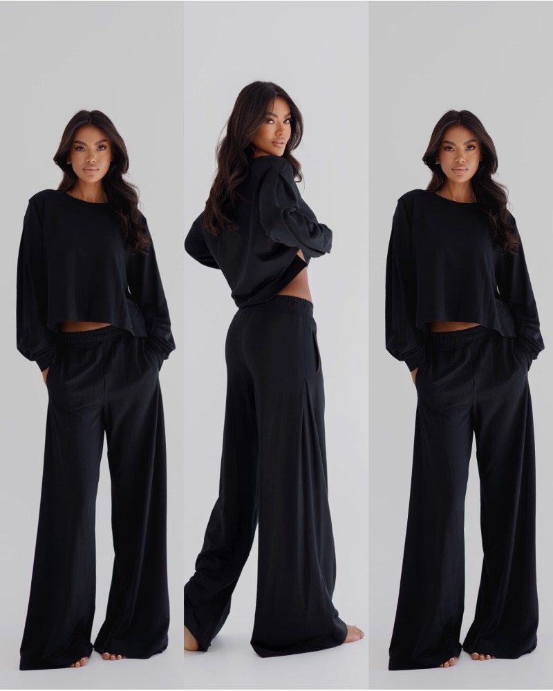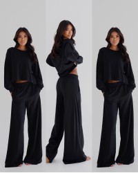Komplet dresowy szerokie spodnie plus bluza By o la la...! czarny