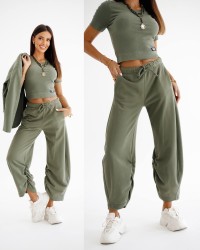 Spodnie dresowe z marszczoną nogawką By o la la...! matcha