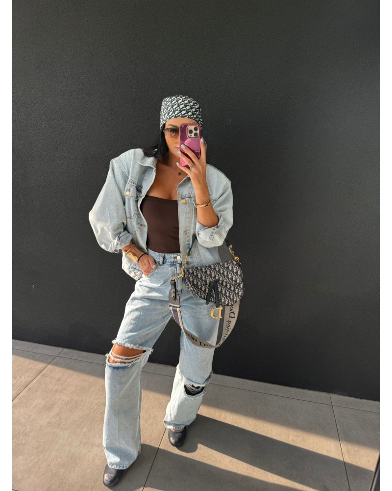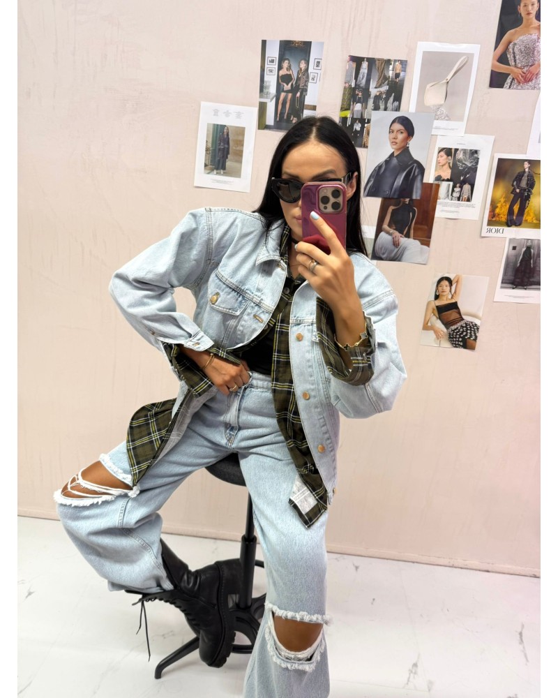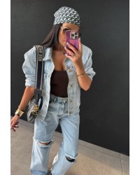 Jeansowa katana o oversize’owym kroju z kieszeniami i metalowymi guzikami. Idealna do casualowych stylizacji na co dzień.