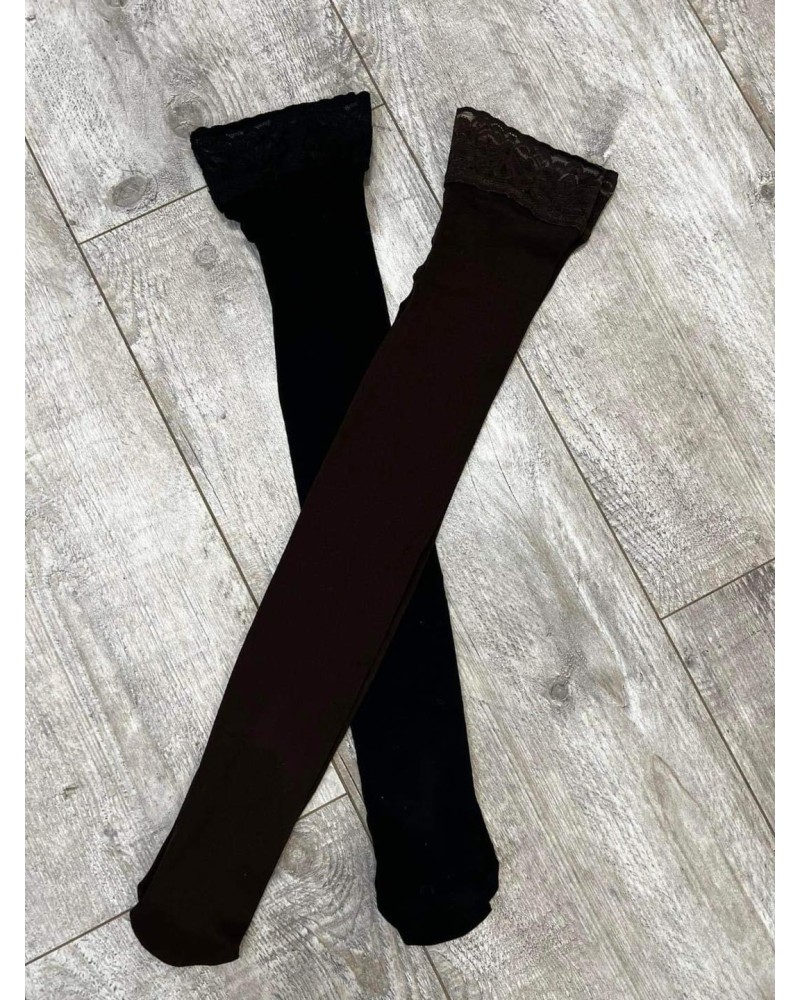Rajstopy By o la la...! wykończone w pasie ozdobną koronką.