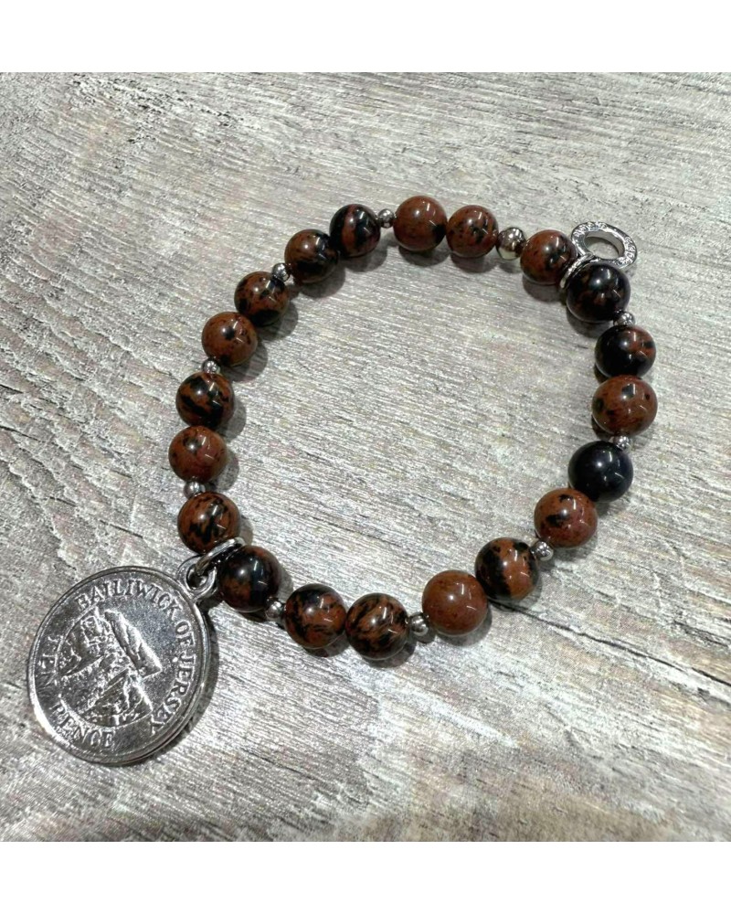 Bransoletka z naturalnego obsydianu mahoniowego, ozdobiona srebrną monetą. Połączenie surowej siły natury i ponadczasowej elegancji.