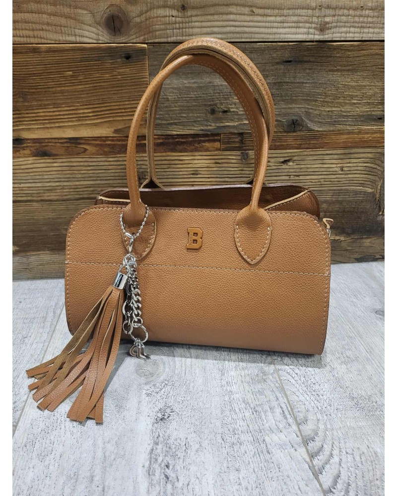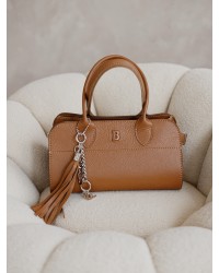 Stylowa torebka o usztywnianej formie, która łączy funkcjonalność z elegancją. Posiada wygodne, podwójne uchwyty do noszenia w ręce oraz ozdobny brelok z frędzlami i łańcuszkiem, który dodaje całości charakteru. Model zapinany na zamek, z przestronnym wnętrzem idealnym na najpotrzebniejsze rzeczy – portfel, telefon, kosmetyki i inne drobiazgi. Doskonale sprawdzi się jako uzupełnienie codziennych oraz bardziej formalnych stylizacji. Ponadczasowy fason, który nie wychodzi z mody.