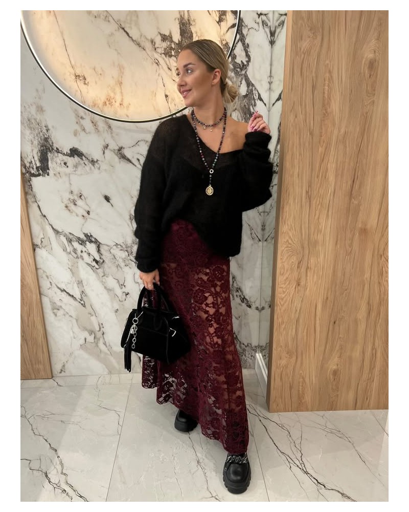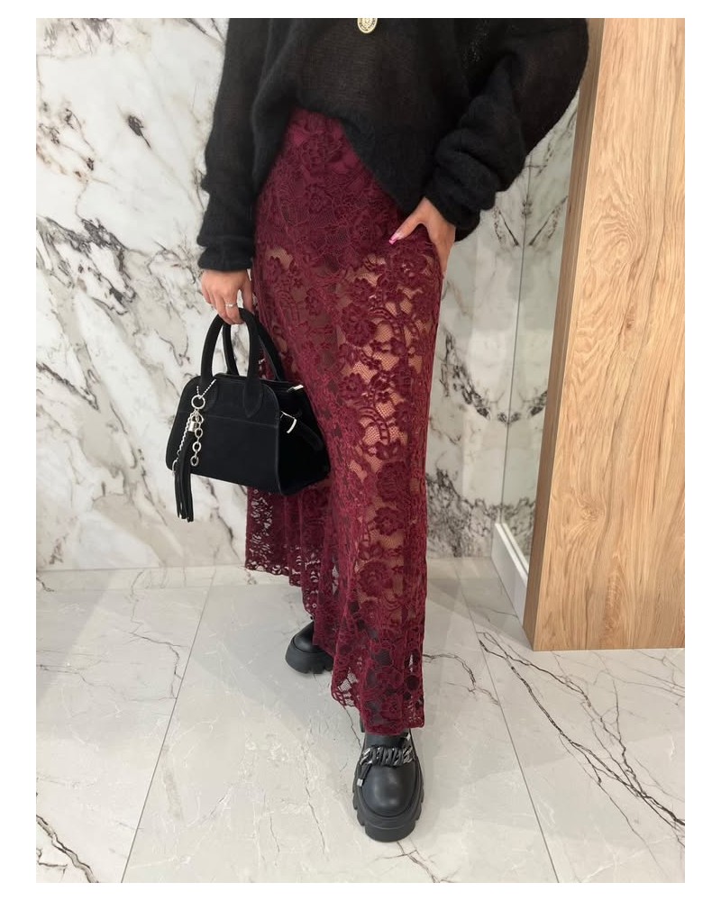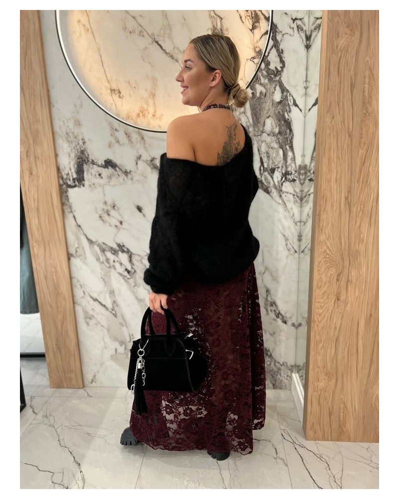 Efektowna spódnica midi wykonana z delikatnej koronki, która dodaje stylizacji lekkości i kobiecego charakteru. Model posiada wszytą podszewkę, zapewniającą komfort i dyskrecję, a elastyczny pas gwarantuje idealne dopasowanie do sylwetki. Spódnica pięknie układa się podczas ruchu i świetnie sprawdzi się zarówno w eleganckich, jak i codziennych zestawach. Idealna na wieczorne wyjścia, uroczystości, ale również jako stylowy akcent w casualowych stylizacjach.