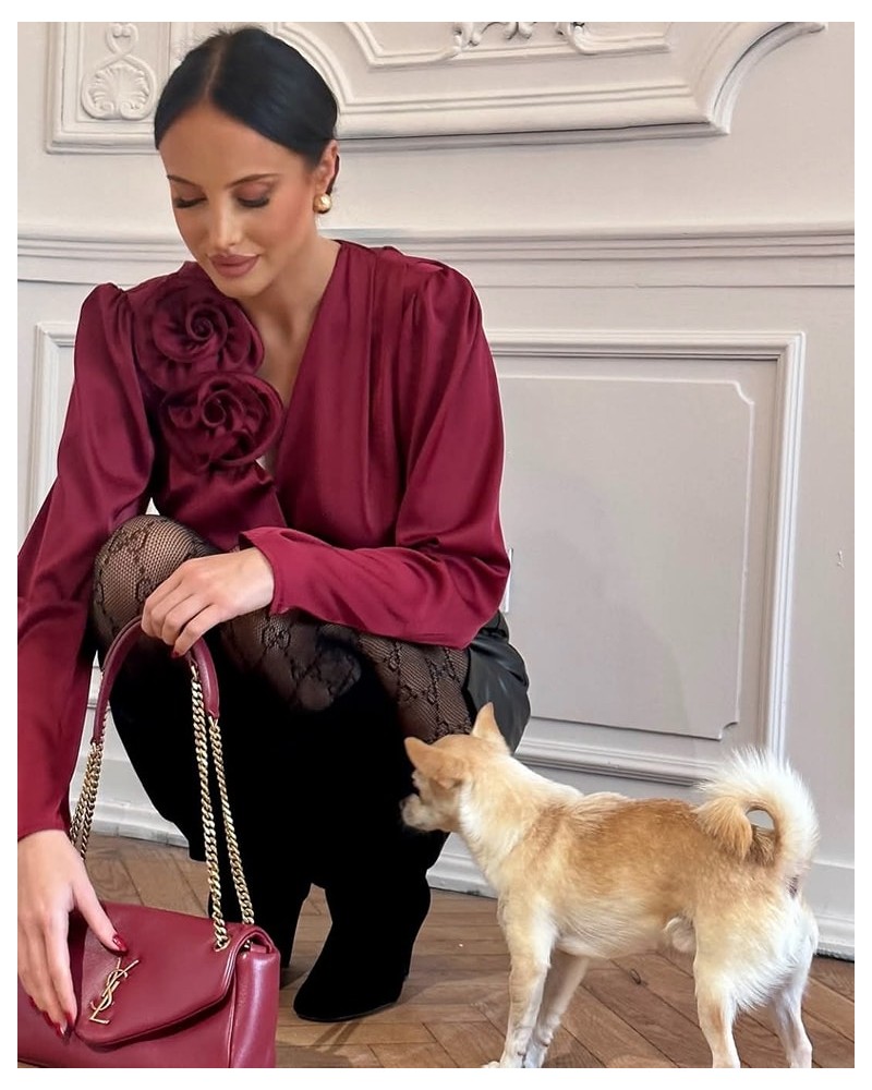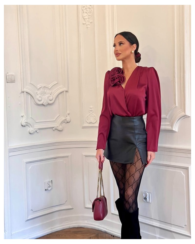 Elegancka koszula z efektowną aplikacją kwiatową przy dekolcie. Idealna do stylizacji wieczorowych i biznesowych.