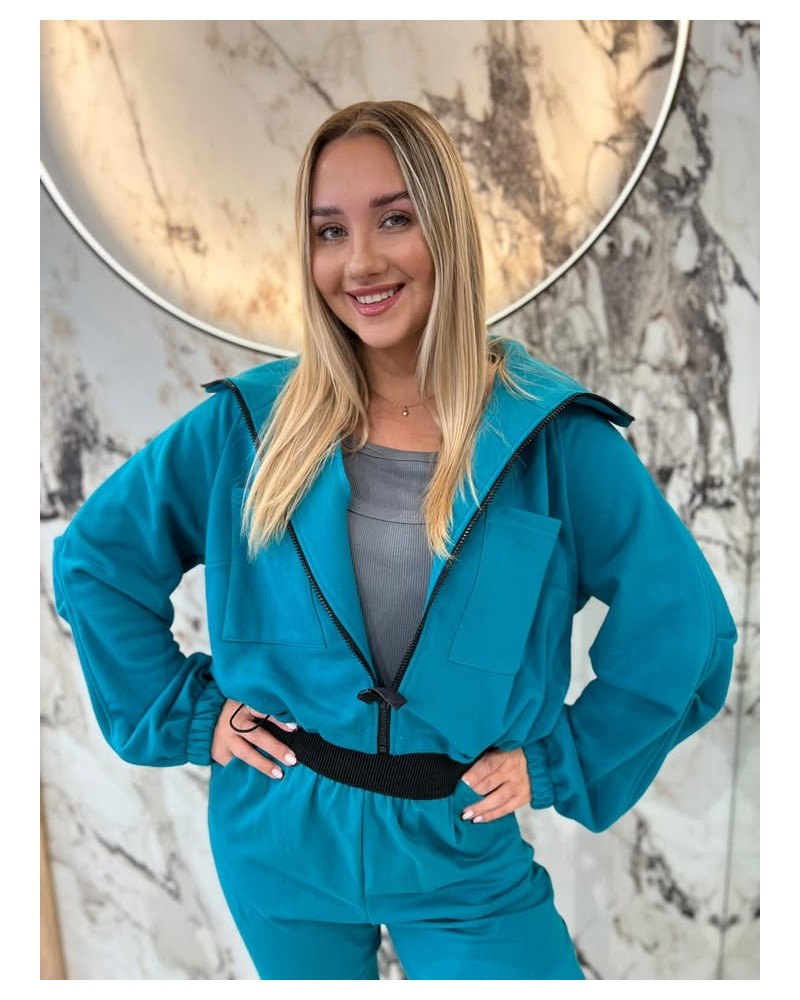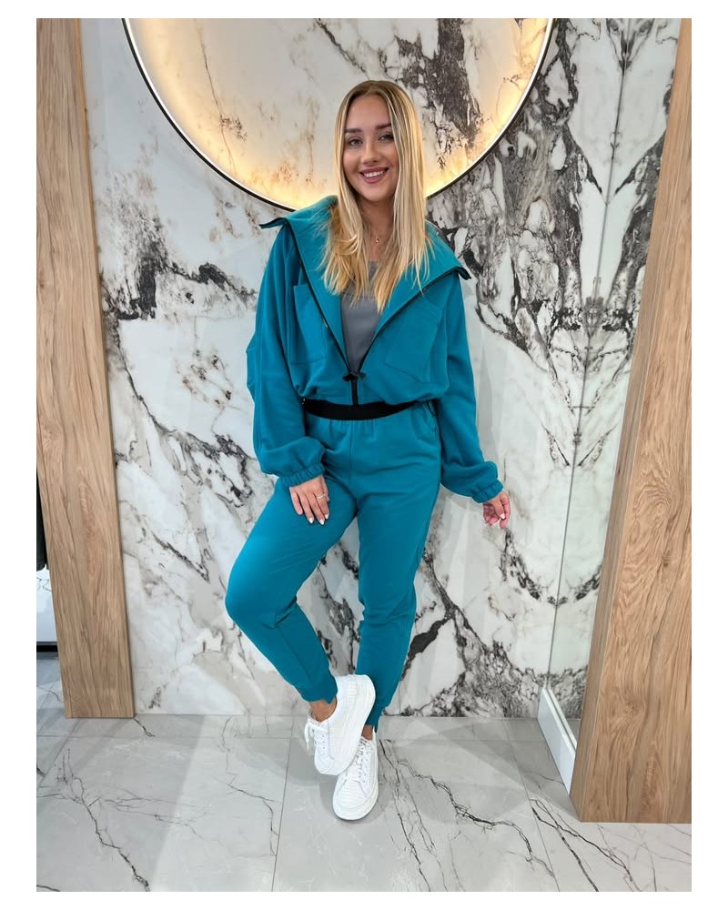 Te spodnie dresowe to połączenie komfortu, stylu i subtelnych detali. Wykonane z miękkiej, przyjemnej w dotyku dzianiny, zapewniają wygodę przez cały dzień. Ściągacze w pasie i przy nogawkach gwarantują dobre dopasowanie, a ozdobne haftowane serduszko na dole dodaje całości modnego charakteru. Model doskonały do codziennych stylizacji – zarówno w domowym zaciszu, jak i podczas miejskich wyjść. Świetnie komponują się z bluzami, t-shirtami oraz sneakersami.