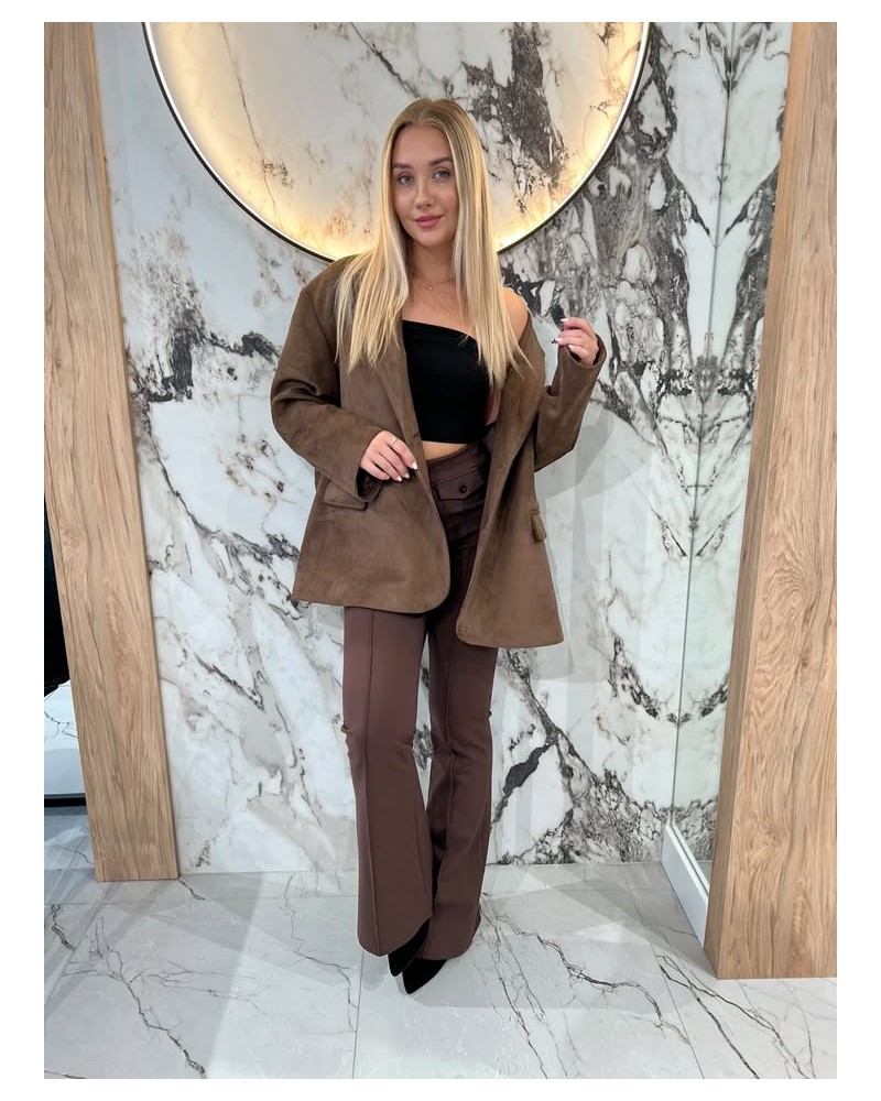 Marynarka o ponadczasowym fasonie wykonana z przyjemnego w dotyku materiału, który gwarantuje komfort noszenia i estetyczny wygląd. Model zapinany na dwa guziki, z klasycznym kołnierzem i praktycznymi kieszeniami z klapkami. Idealnie sprawdzi się zarówno w codziennych stylizacjach, jak i jako uzupełnienie eleganckiego looku. Świetnie komponuje się z jeansami, spodniami materiałowymi czy sukienkami. Doskonała propozycja dla kobiet ceniących uniwersalne i stylowe rozwiązania.