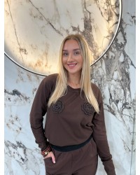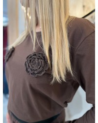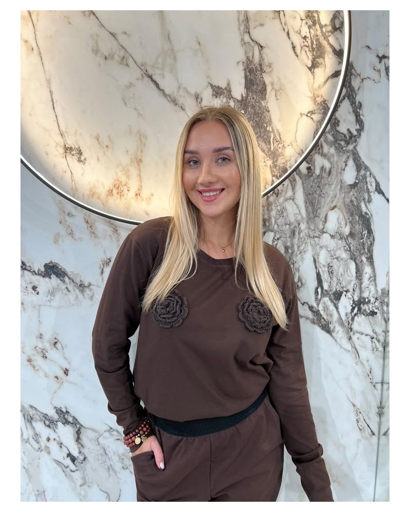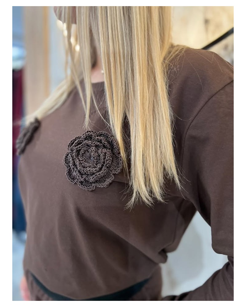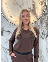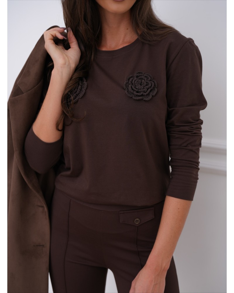 Bluzka z długim rękawem ozdobiona efektownymi kwiatowymi aplikacjami z przodu. Idealna propozycja na co dzień i na specjalne okazje.