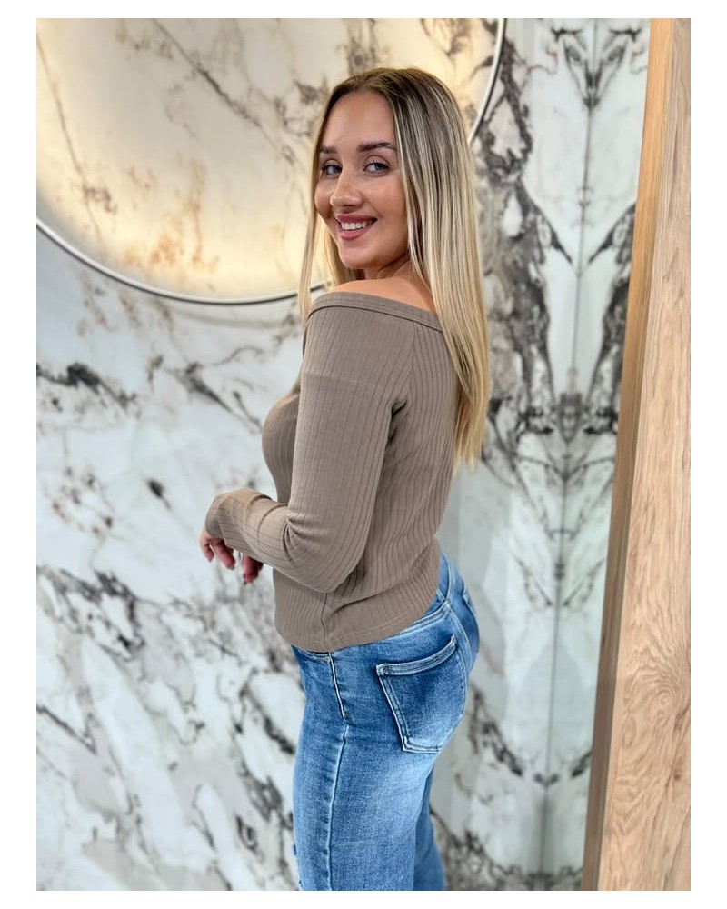 Bluzka prążkowana z długim rękawem to idealna propozycja na co dzień. Wygodna, elastyczna i dopasowująca się do sylwetki – świetnie sprawdzi się w każdej stylizacji.