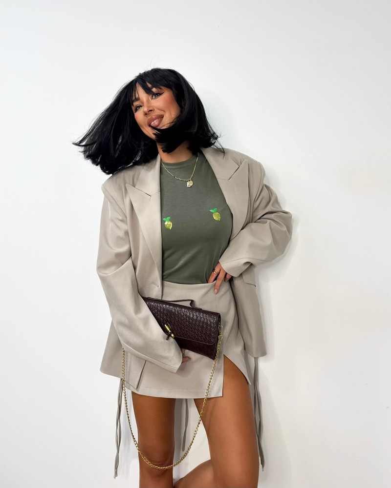 Stylowy t-shirt o klasycznym kroju, wykonany z wysokiej jakości, miękkiej bawełny, która zapewnia komfort noszenia przez cały dzień. Model wyróżnia się dopasowanym fasonem, okrągłym dekoltem oraz subtelnym nadrukiem z przodu, dodającym mu oryginalnego charakteru. Dzięki swojej prostocie i minimalistycznym detalom koszulka doskonale komponuje się z jeansami, szortami czy spódnicą, tworząc zarówno luźne, jak i bardziej dopracowane stylizacje. To uniwersalny element garderoby, który sprawdzi się na co dzień, do pracy, jak i podczas spotkań w mniej formalnym stylu.