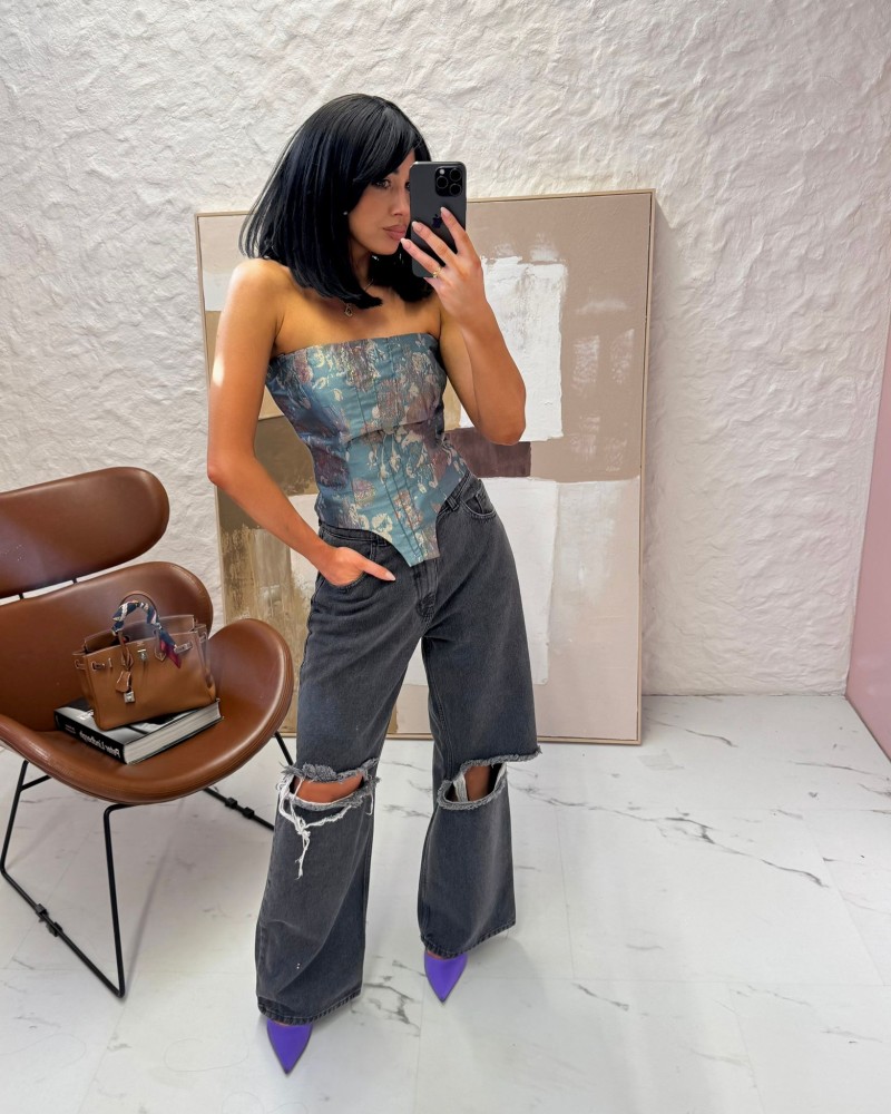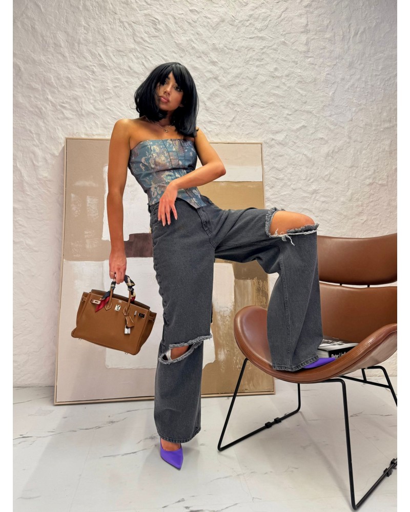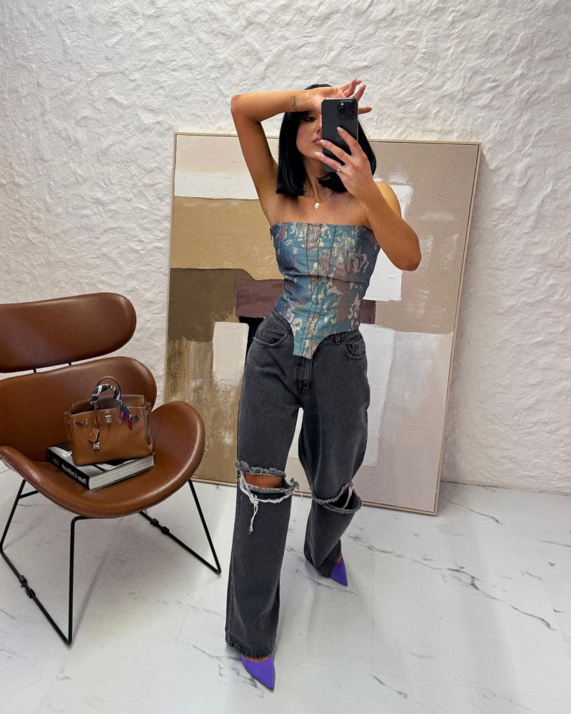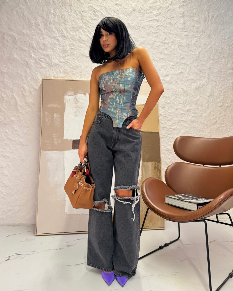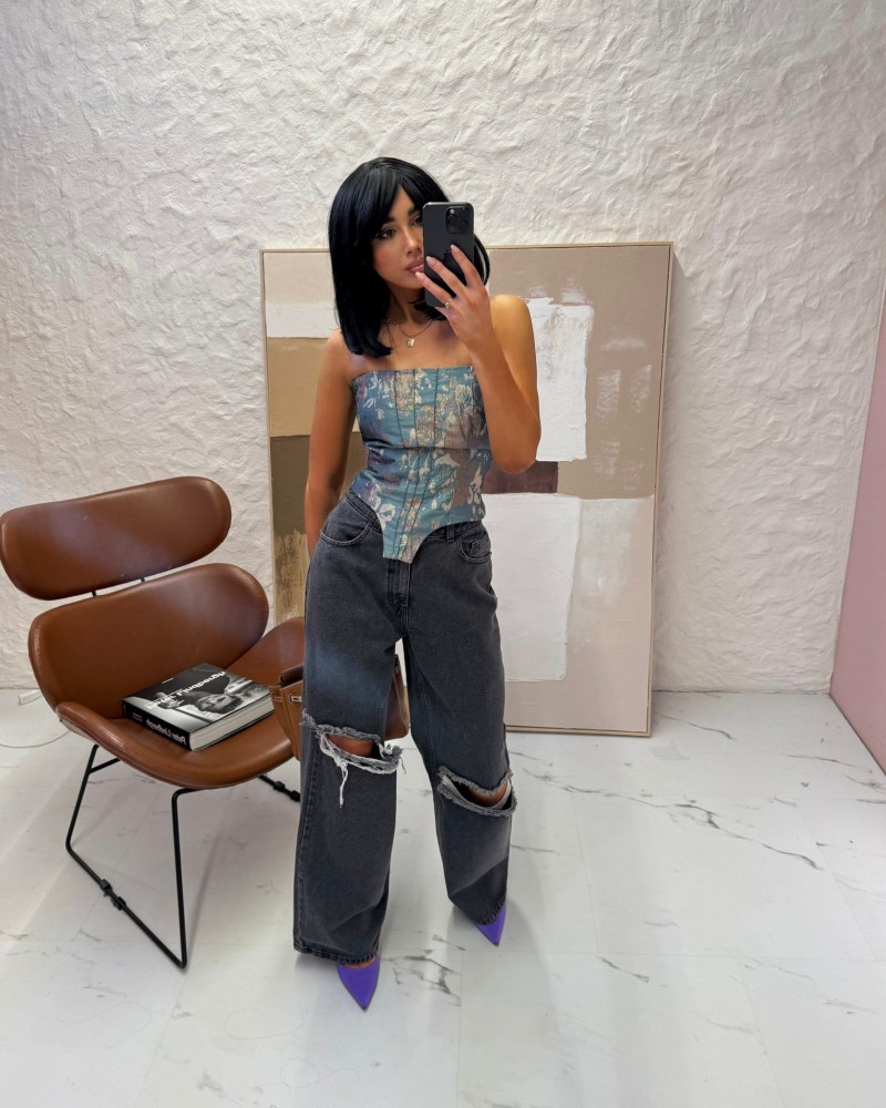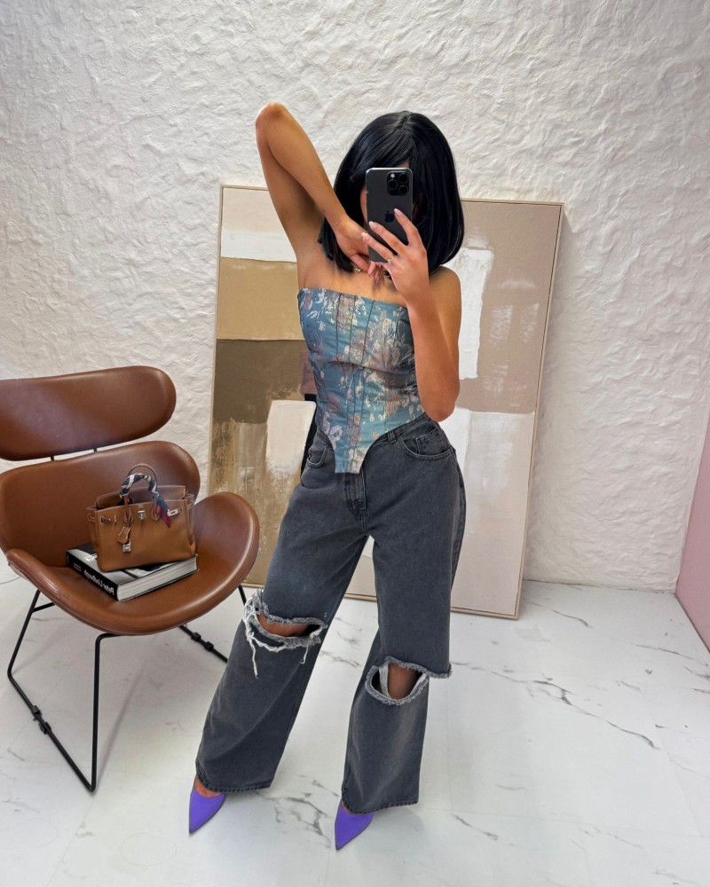 Modne jeansy damskie z wysokim stanem i przetarciami na kolanach to połączenie wygody, stylu i miejskiego charakteru. Luźny krój typu wide leg zapewnia swobodę ruchów i świetnie prezentuje się na każdej sylwetce. Wykonane z wysokiej jakości, lekko spranego denimu, spodnie idealnie wpisują się w aktualne trendy streetwearowe. Przetarcia dodają całości nonszalancji, a klasyczny niebieski odcień denimu pozwala na wiele możliwości stylizacji – od sportowych po casualowe zestawy. Idealne na co dzień, do sneakersów, crop topów, T-shirtów i oversize’owych kurtek.