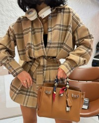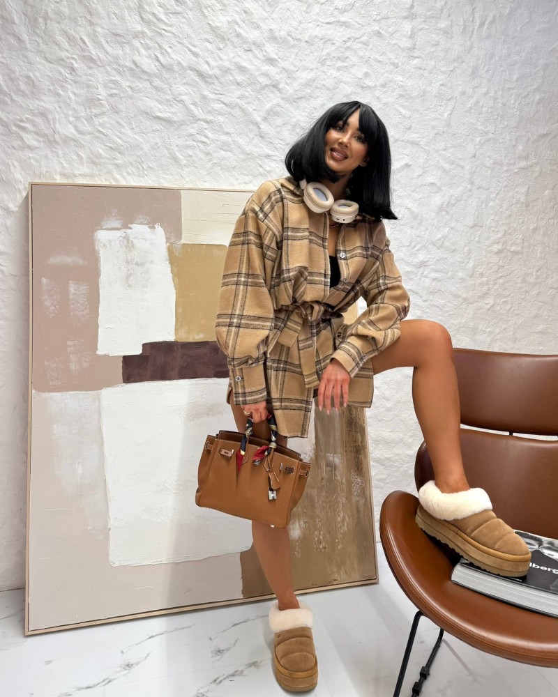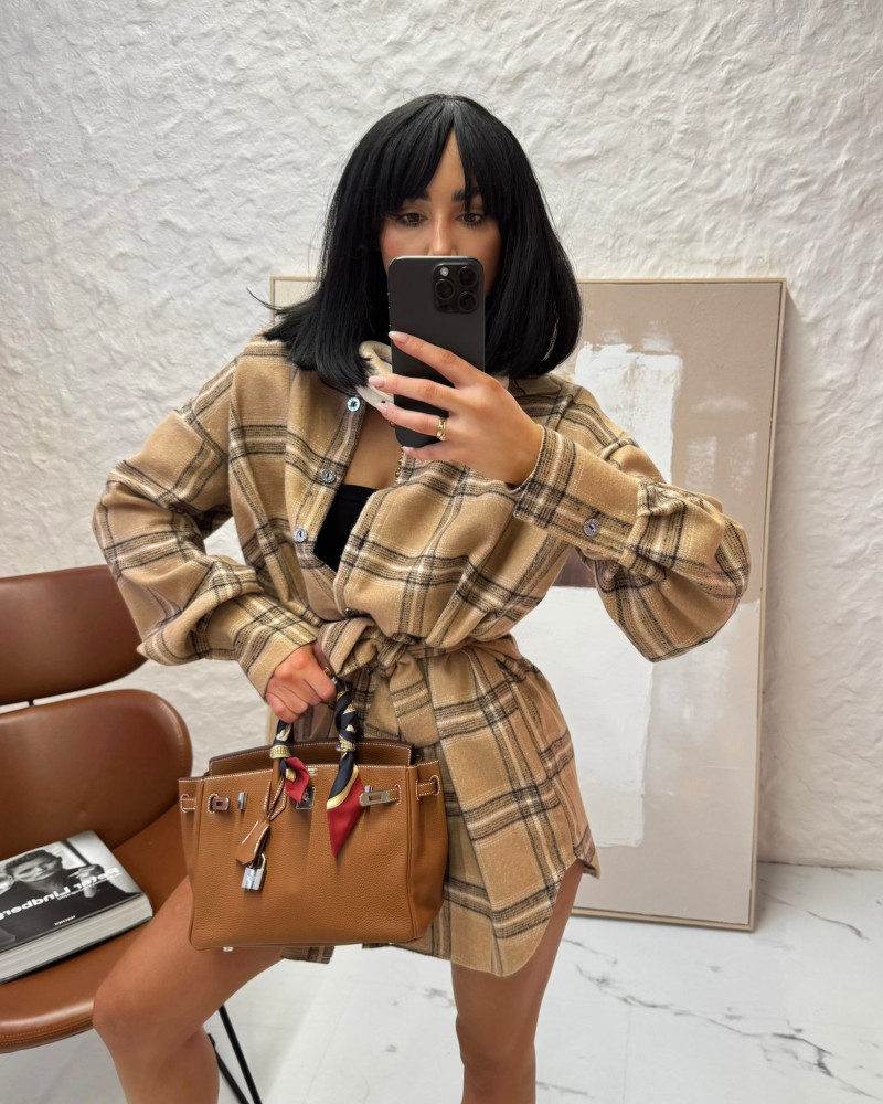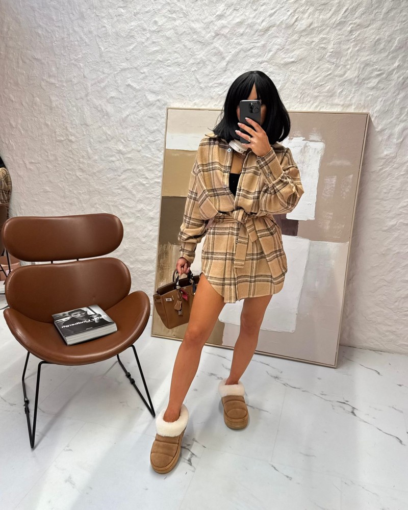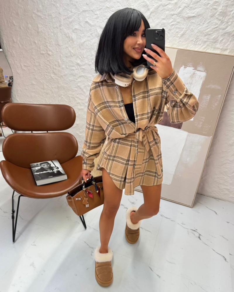 Koszula ocieplana z paskiem w kratę La Milla beżowa