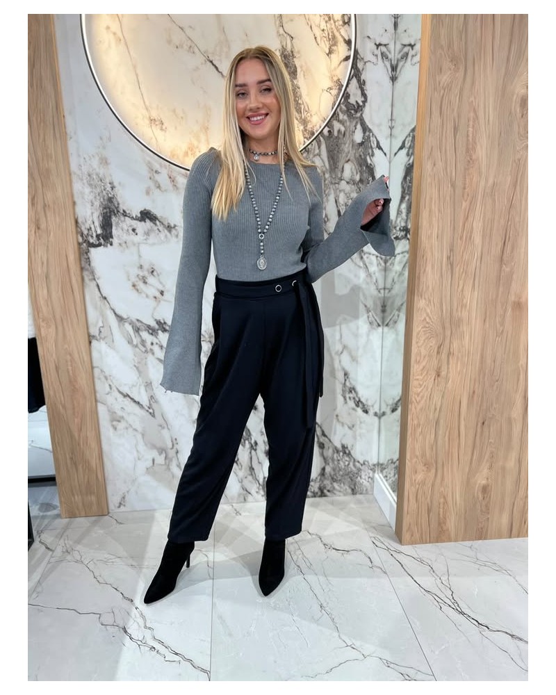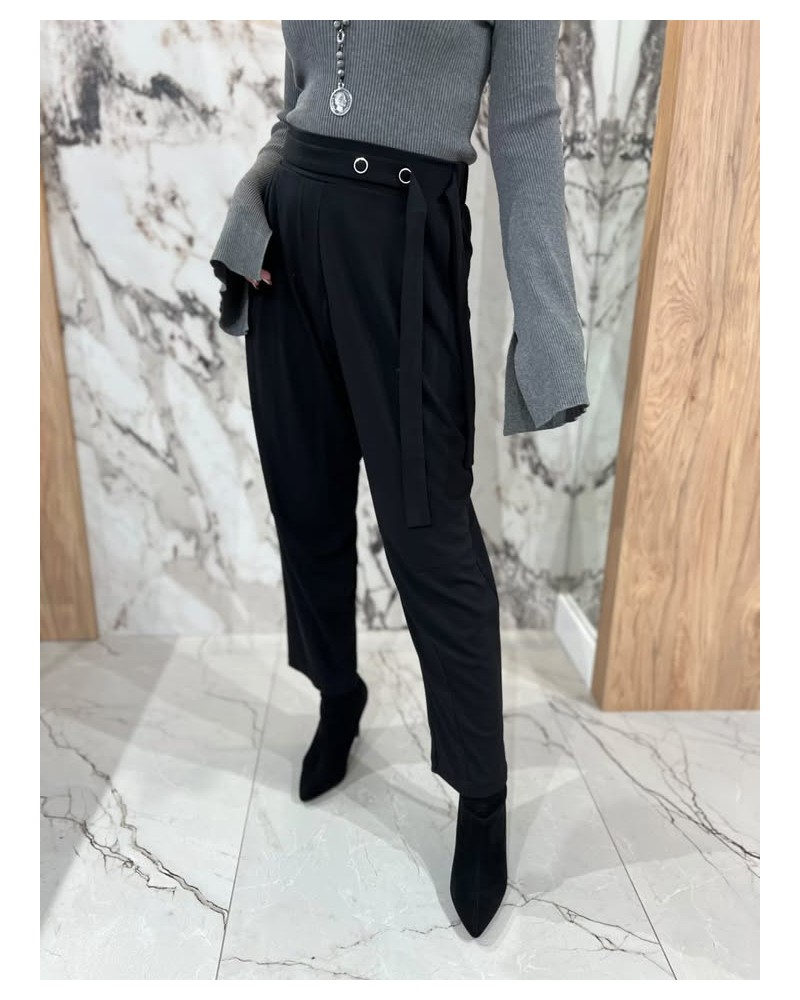 Stylowe, wygodne spodnie z ozdobnym detalem w pasie to idealna propozycja do codziennych i bardziej eleganckich stylizacji.