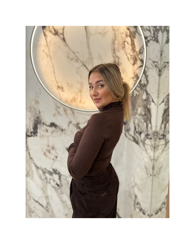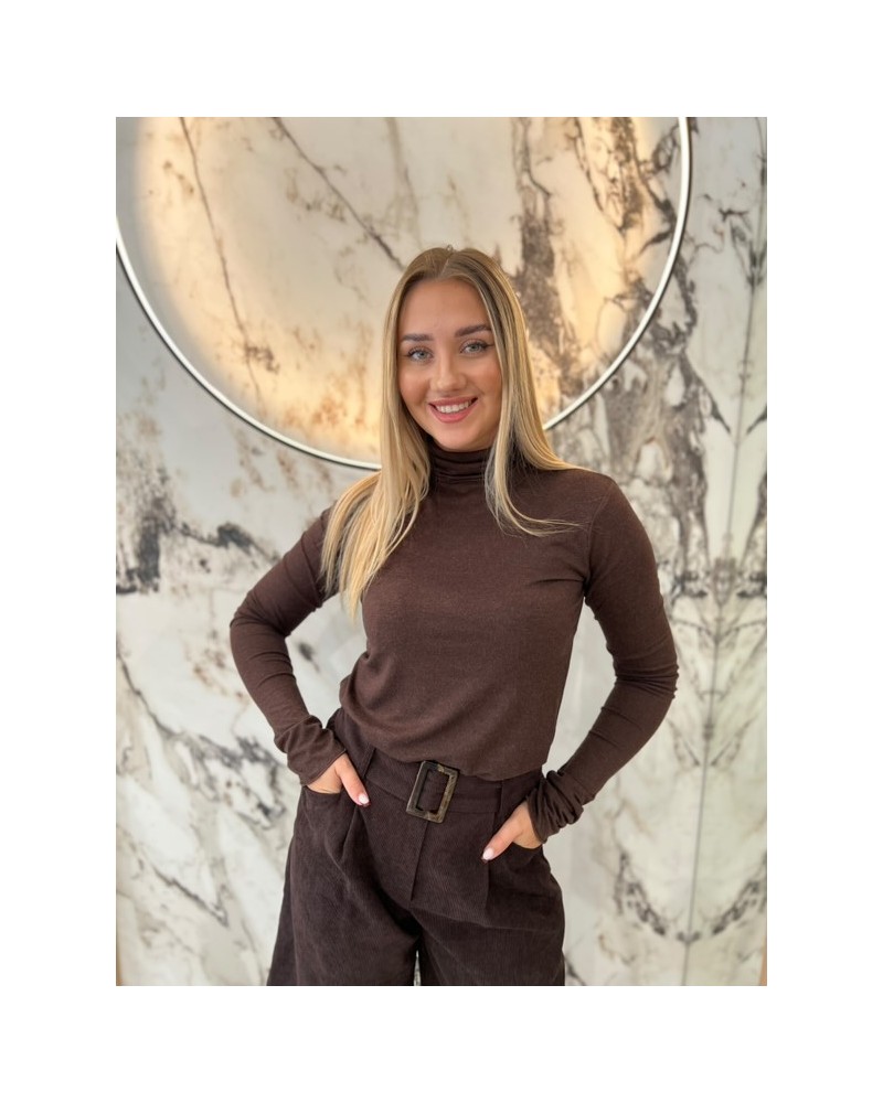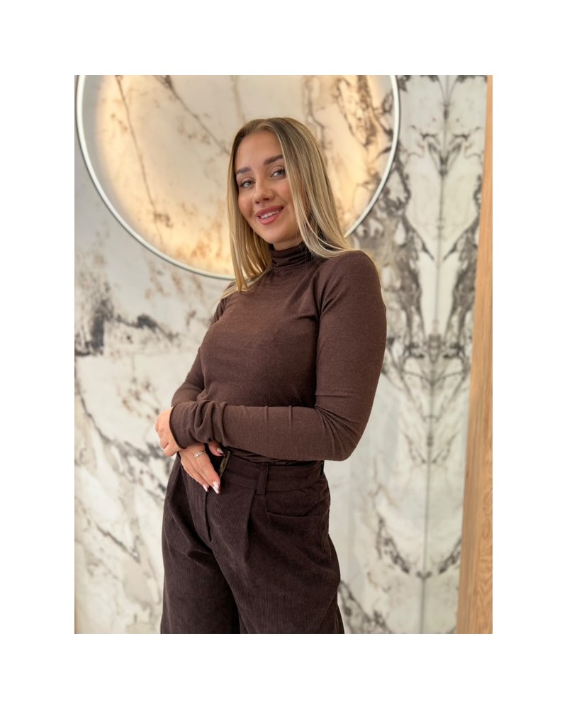 Golf z długim rękawem to must-have w każdej kobiecej garderobie. Dopasowany fason pięknie przylega do ciała, podkreślając figurę i jednocześnie zapewniając komfort noszenia przez cały dzień. Klasyczny dekolt i minimalistyczny krój sprawiają, że model ten jest niezwykle uniwersalny – świetnie komponuje się zarówno ze spodniami typu jeans czy eleganckimi cygaretkami, jak i ze spódnicami. Idealne jako baza do wielu stylizacji – od codziennych po bardziej eleganckie zestawy. Wykonane z przyjemnego w dotyku materiału, który zapewnia wygodę i swobodę ruchów.