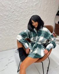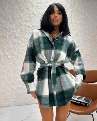 Koszula ocieplana z paskiem w kratę La Milla zielona