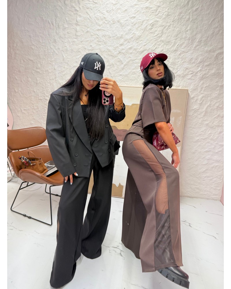Szerokie spodnie z efektownymi wstawkami z siateczki, które dodają charakteru każdej stylizacji.