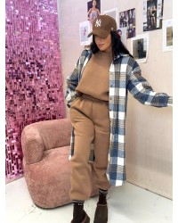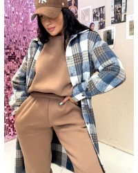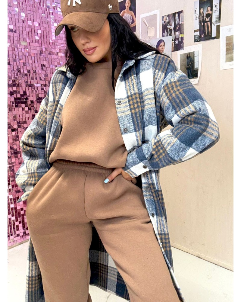 Długa koszula w modną kratę to stylowy wybór na co dzień, idealny do warstwowych stylizacji.