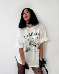 Oversize’owy t-shirt z unikalnym nadrukiem La Milla – połączenie komfortu i modowego charakteru.