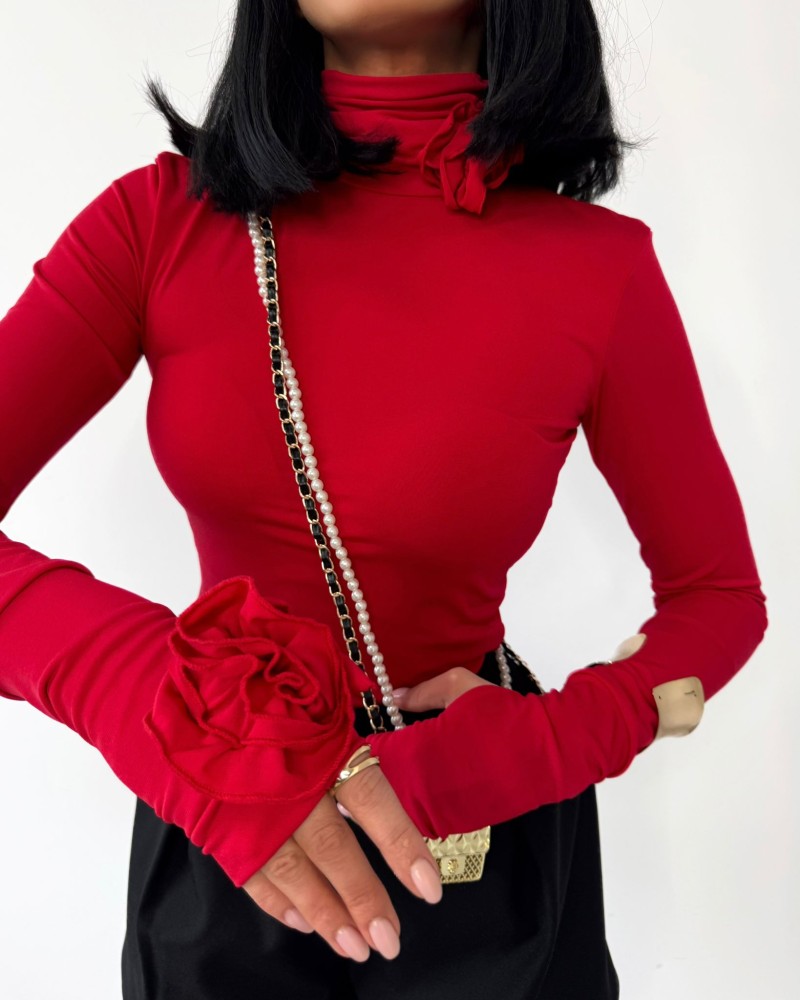 Golf z różami przy szyi i mankietach — kobiecy, elegancki i wyjątkowy.