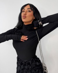 Golf z delikatnymi różami przy szyi i na rękawach to połączenie klasyki z subtelnym romantyzmem. Wykonany z miękkiego, elastycznego materiału, doskonale dopasowuje się do sylwetki, podkreślając kobiece kształty.