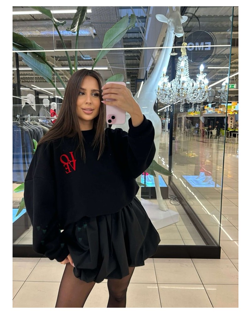 Modny zestaw składający się z luźnej bluzy z nadrukiem . Oversizowa bluza zapewnia wygodę i swobodę ruchów, a nadruk dodaje stylizacji wyrazistości. . To świetna propozycja zarówno na co dzień, jak i na wyjścia z przyjaciółmi czy wieczorne spotkania. Zestaw można nosić razem lub oddzielnie, tworząc wiele różnych stylizacji.