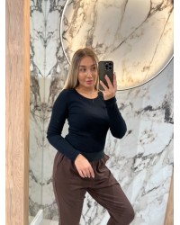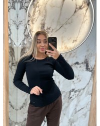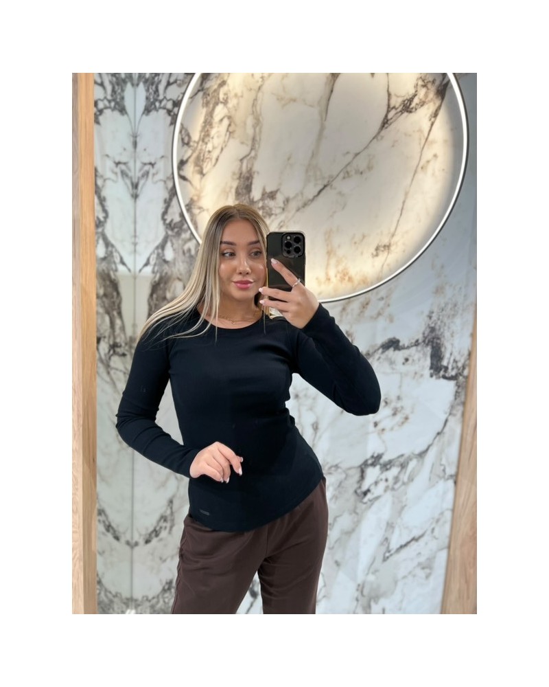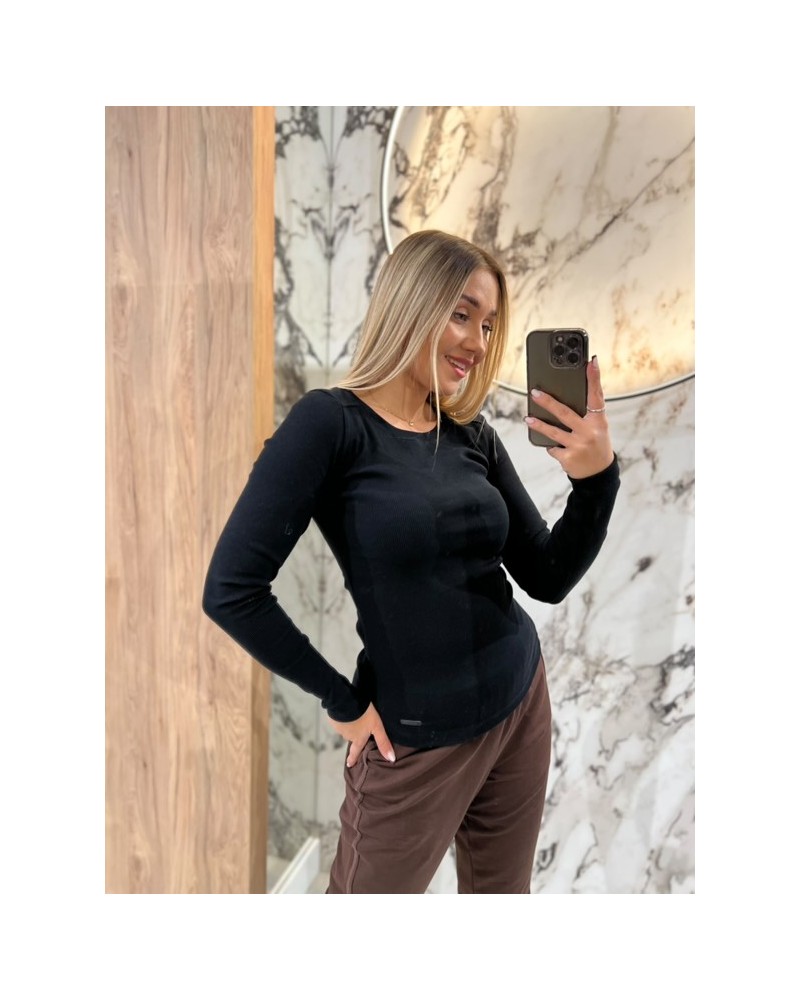 Basic prążkowany z długim rękawem By o la la...! czarny