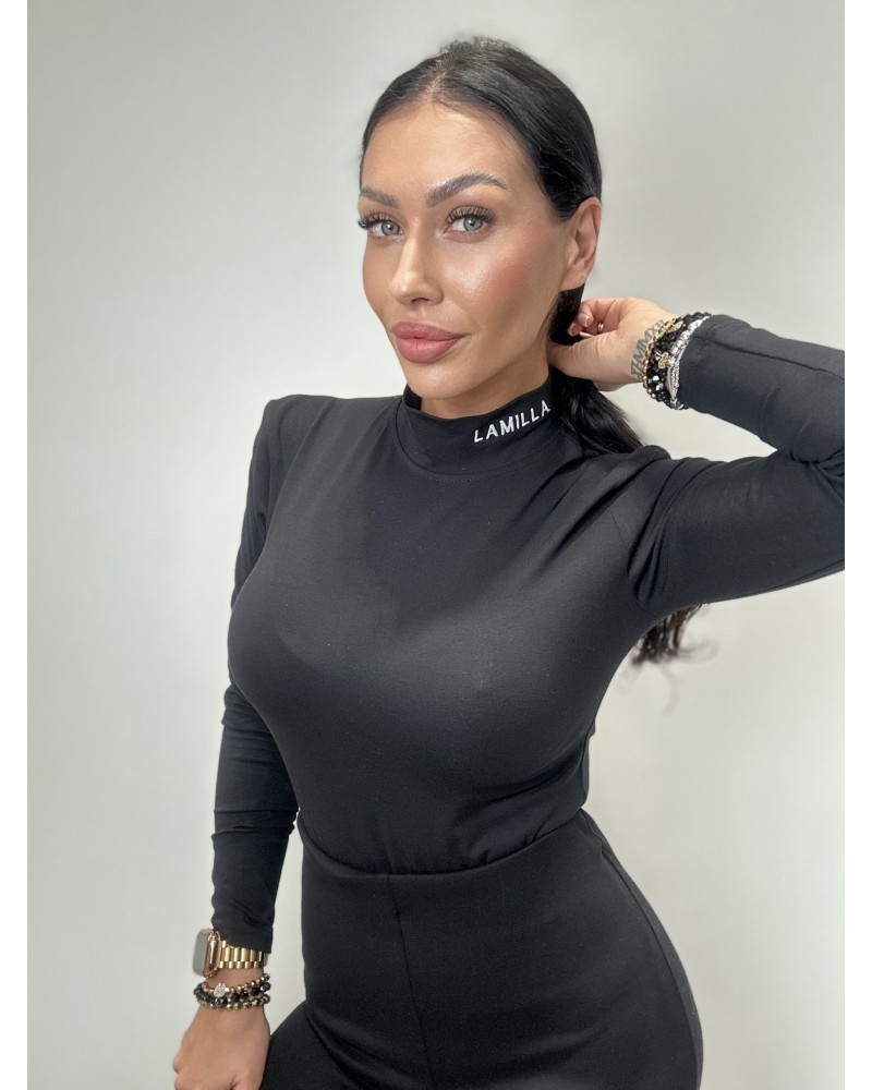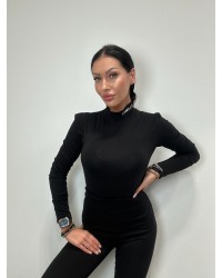 Dopasowane body golf z elastycznego materiału, ozdobiony subtelnym logo na stójce. Idealna baza do wielu stylizacji – od sportowych po eleganckie.