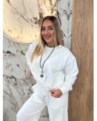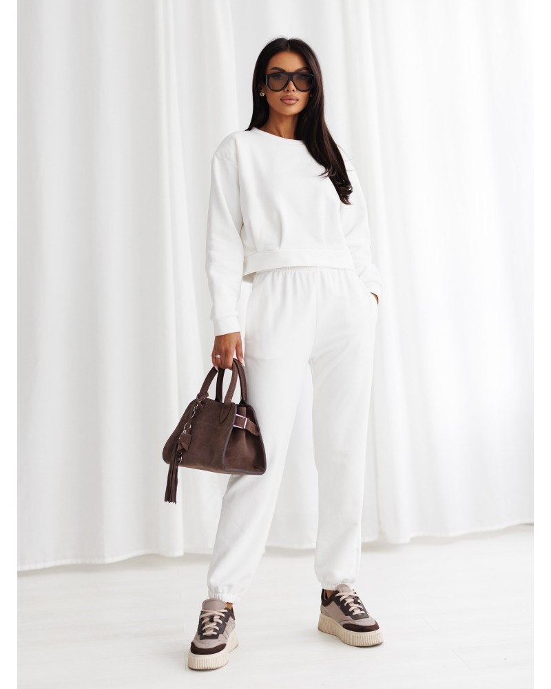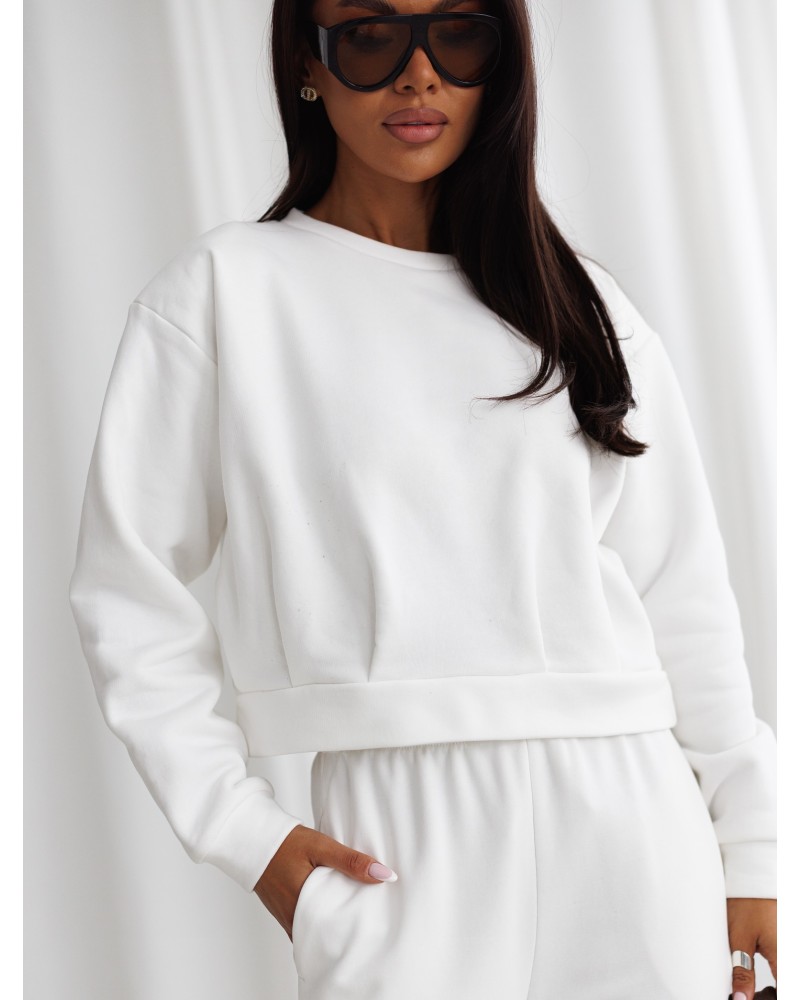 Ta minimalistyczna bluza to uniwersalny element garderoby, który łączy wygodę z subtelnym detalem. Model posiada klasyczny, prosty fason z okrągłym dekoltem i delikatnie obniżoną linią ramion, co nadaje mu swobodnego charakteru. Dół bluzy został ozdobiony subtelnymi zakładkami, które wprowadzają lekkość i urozmaicają prostą formę.