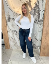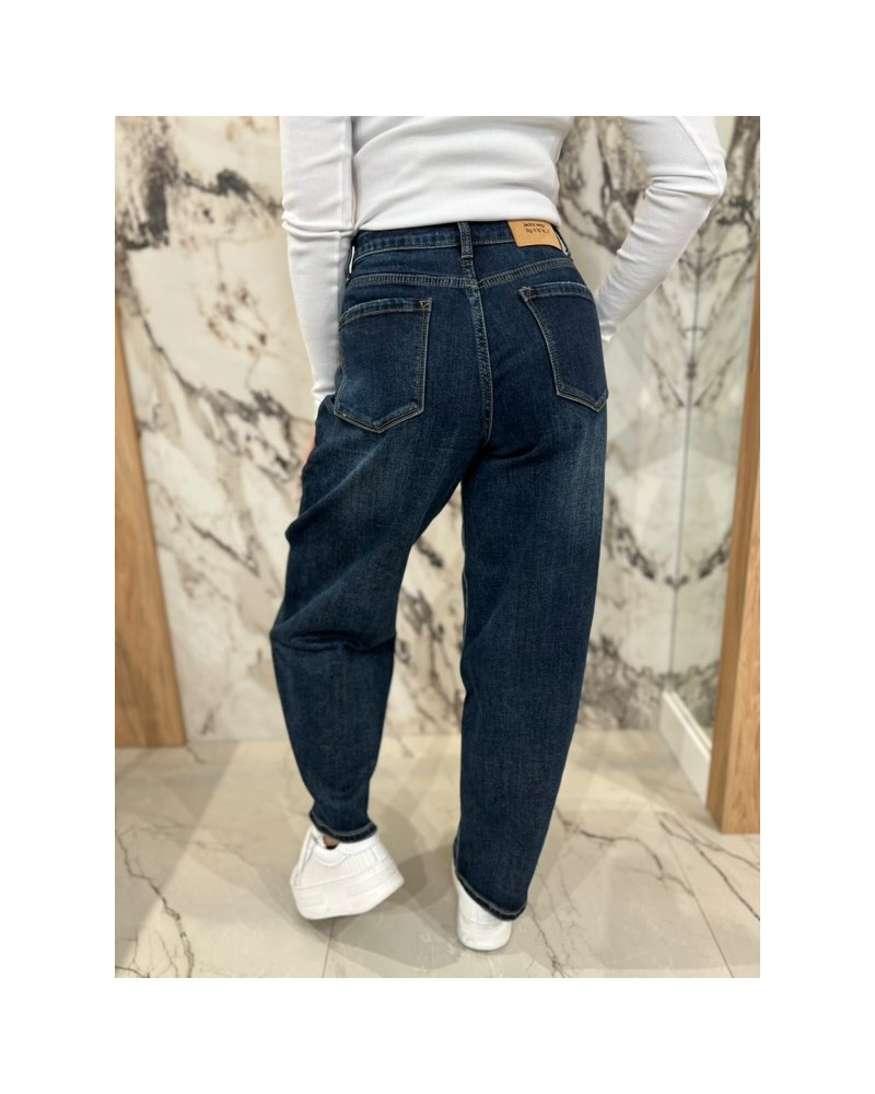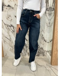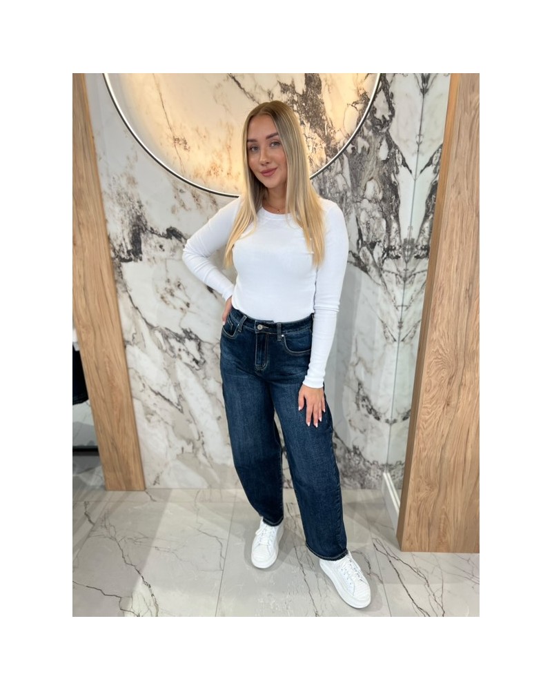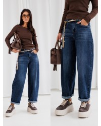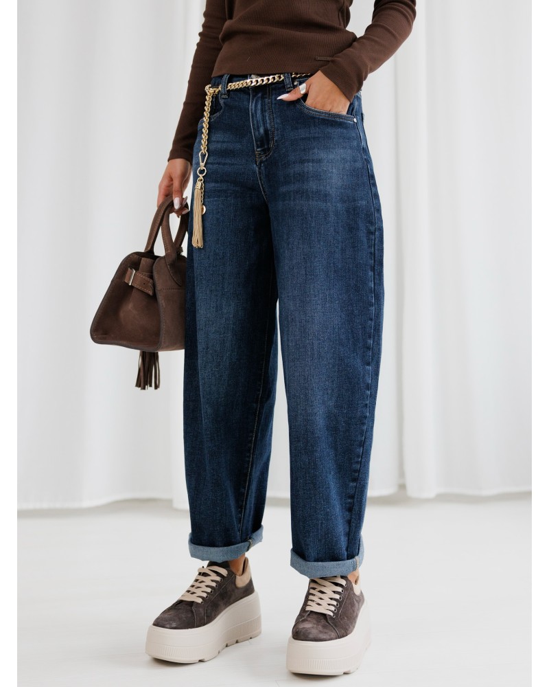 Jeansy o fasonie balloon z luźniejszą nogawką i zwężanym dołem. Idealne połączenie wygody i miejskiego stylu.