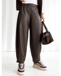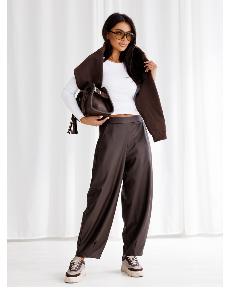 Stylowe spodnie z ekoskóry o luźnym kroju i wysokim stanie. Modne, wygodne i idealne do nowoczesnych stylizacji.