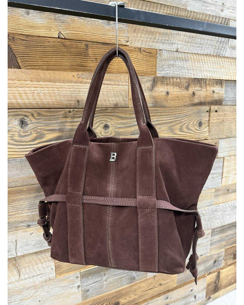 Stylowa torba shopper z zamszowym wykończeniem i detalem w postaci metalowej litery "B" – idealna do codziennych stylizacji.