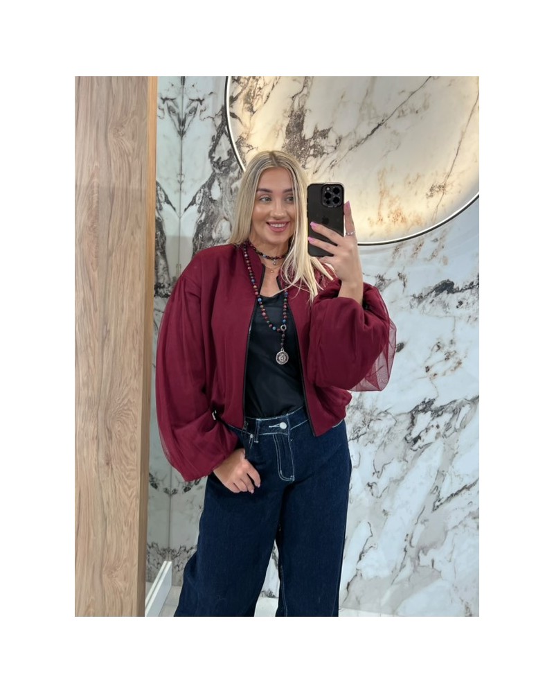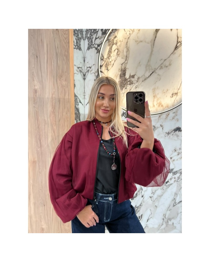 Nowoczesna bluza zapinana na suwak z wyjątkowym akcentem w postaci tiulowych, bufiastych rękawów. Lekko oversize’owy krój zapewnia komfort i swobodę ruchów, a transparentne rękawy nadają całości lekkości i elegancji. Idealna propozycja na co dzień, do pracy lub na wieczorne wyjścia — wystarczy dodać ulubione spodnie lub spódnicę. Ta bluza to świetny wybór dla kobiet, które cenią sobie wygodę, ale nie rezygnują z modnych i kobiecych detali.