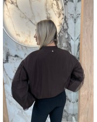 Bluza o nietuzinkowym kroju z delikatnymi, tiulowymi rękawami i zapięciem na zamek. Połączenie wygody i kobiecego stylu.