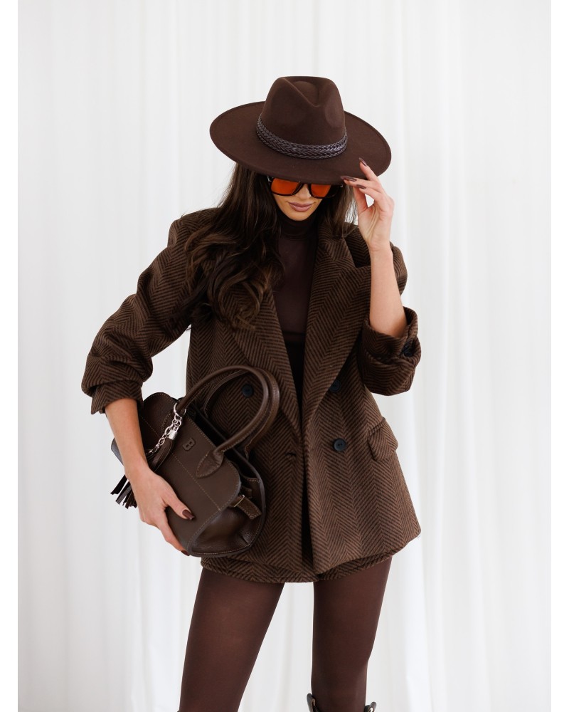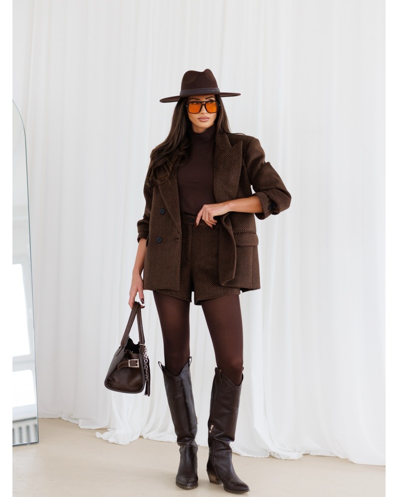 Stylowe szorty z modnym wzorem w jodełkę, idealne do eleganckich i codziennych stylizacji.