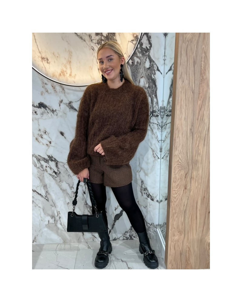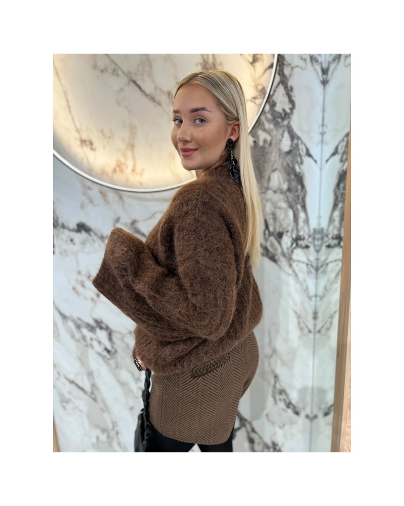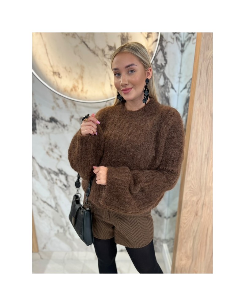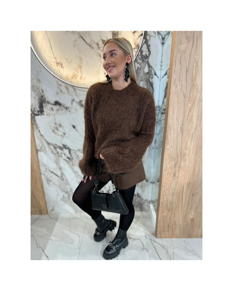 Puszysty sweter o luźnym kroju z bufiastymi rękawami – idealny na chłodne dni, wygodny i kobiecy.