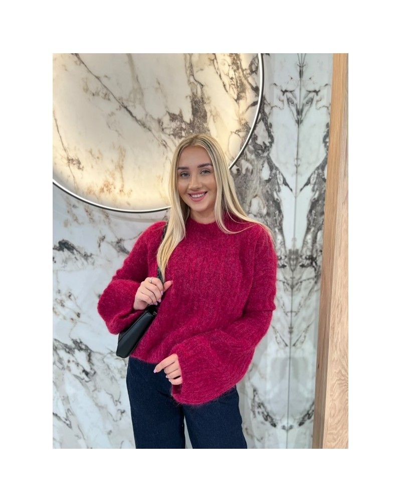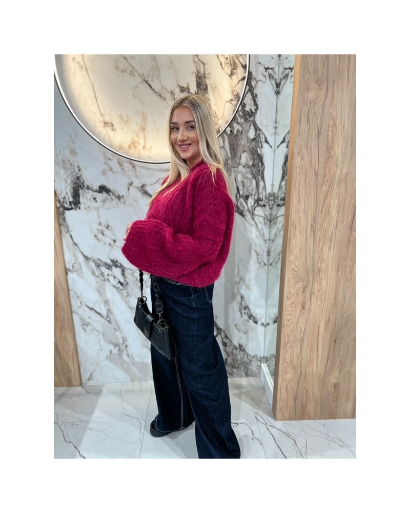 Puszysty sweter o luźnym kroju z bufiastymi rękawami – idealny na chłodne dni, wygodny i kobiecy.