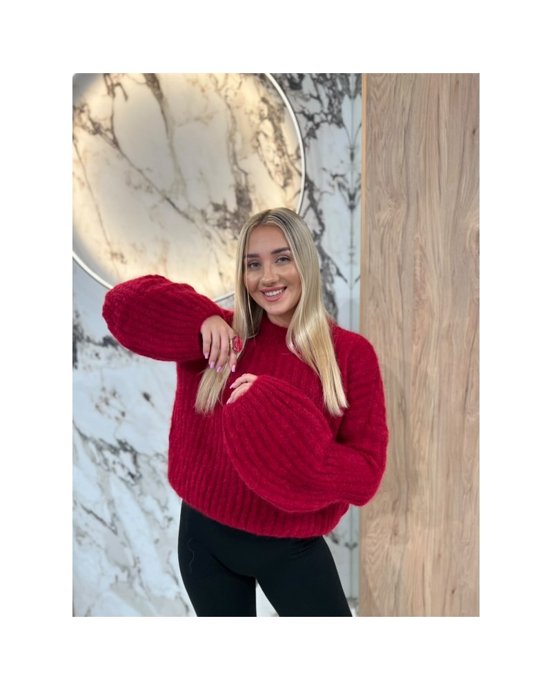 Puszysty sweter o luźnym kroju z bufiastymi rękawami – idealny na chłodne dni, wygodny i kobiecy.