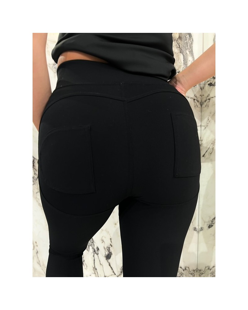 Stylowe legginsy prążkowane typu push up, które podkreślają kobiecą sylwetkę i zapewniają maksymalny komfort noszenia. Elastyczny, dopasowujący się materiał modeluje pośladki, a wysoki stan pięknie podkreśla talię. Idealne na trening, spacer lub codzienne stylizacje.