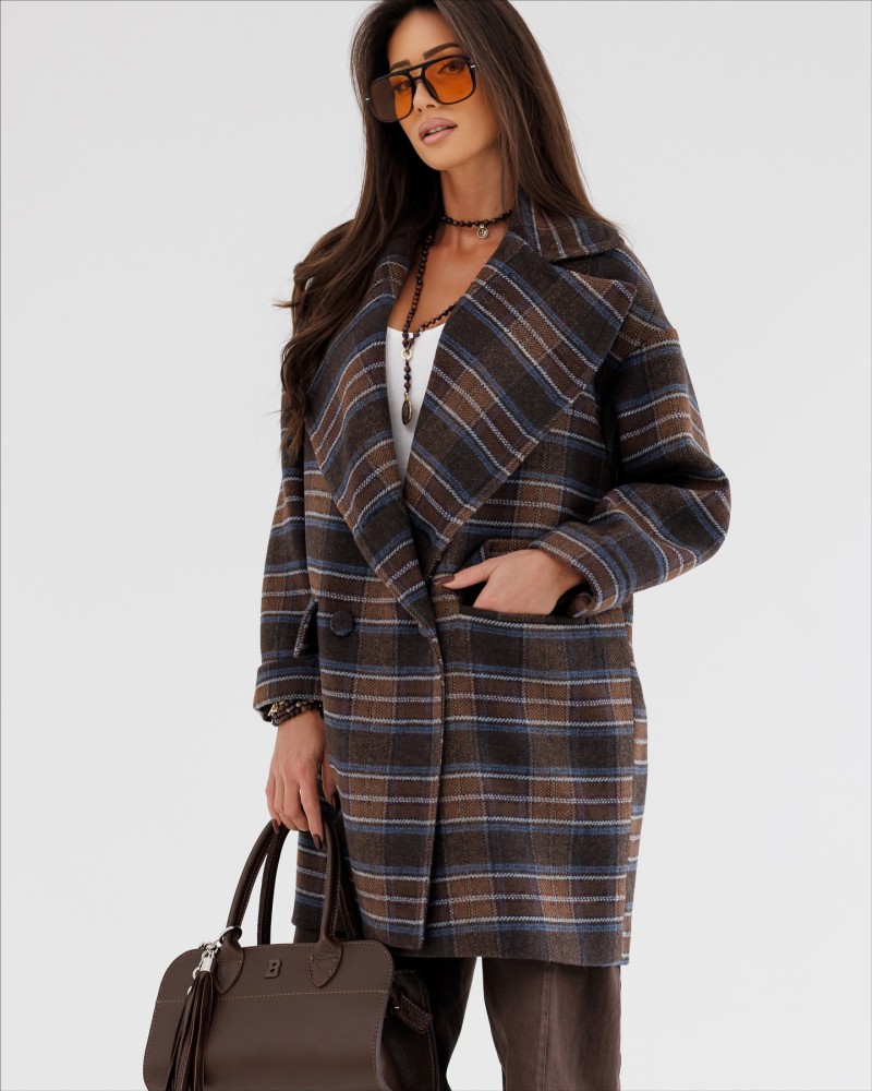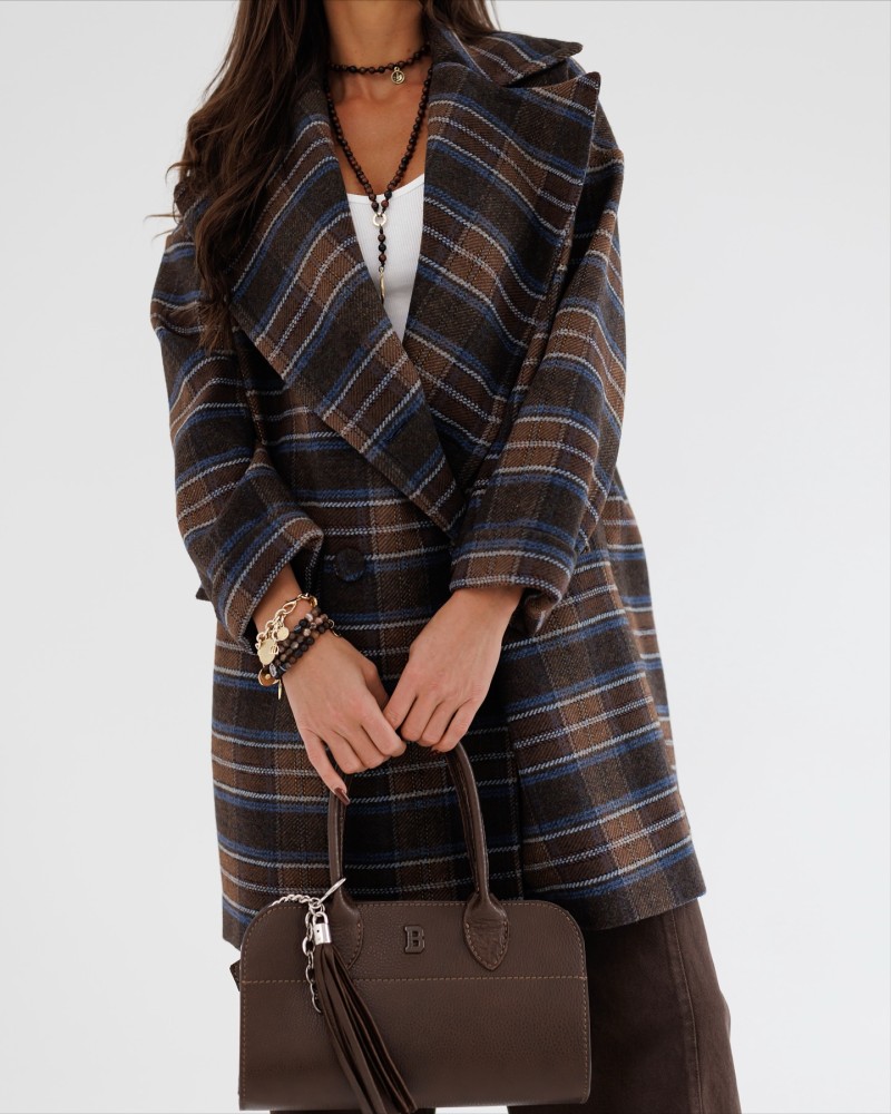 Elegancki płaszcz w kratę to idealne połączenie klasyki i nowoczesnego stylu. Model o prostym, lekko oversize’owym kroju z dużymi klapami i zapięciem na guziki pięknie prezentuje się w każdej stylizacji. Wykonany z miękkiego, ciepłego materiału, zapewnia komfort noszenia nawet w chłodniejsze dni. Posiada praktyczne kieszenie i podszewkę, co podkreśla jego jakość i funkcjonalność. Dostępny w kilku wyjątkowych wersjach kolorystycznych – zielonej, beżowej, brązowej i bordowej – dzięki czemu łatwo dopasujesz go do swojego stylu. Doskonały wybór do jesiennych i zimowych stylizacji.