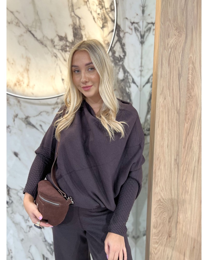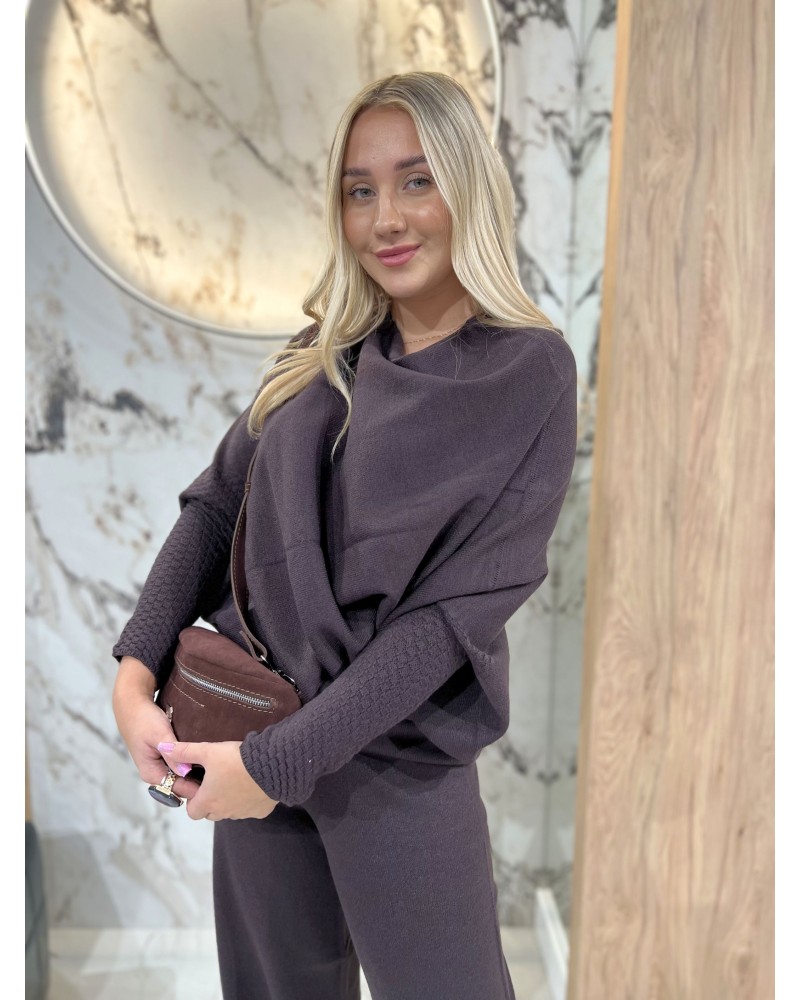 To doskonały zestaw zarówno na co dzień, jak i do pracy czy na spotkanie — wygląda efektownie i nie wymaga dodatkowych stylizacyjnych zabiegów. Dostępny w kilku modnych kolorach: bordo, ecru, beżowym, czarnym i szarym.