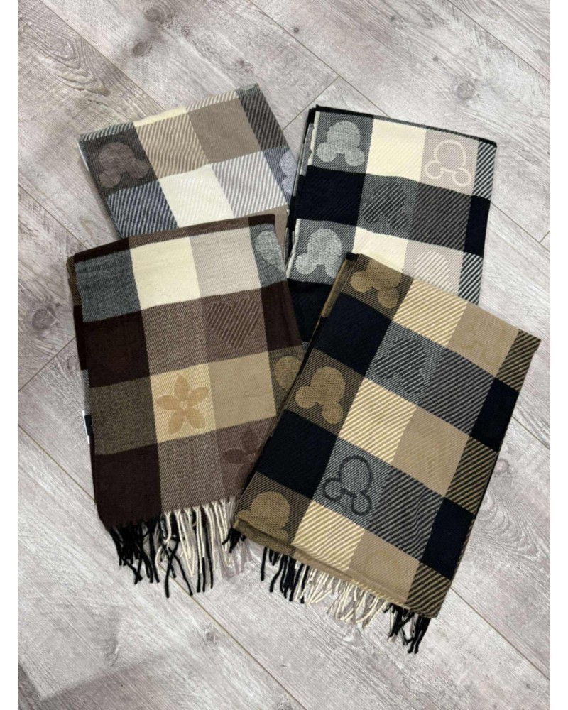 Stylowy szalik w kratę z frędzlami – miękki, ciepły i idealny na chłodne dni. Klasyczny wzór w modnych, stonowanych kolorach pasuje do każdej stylizacji.