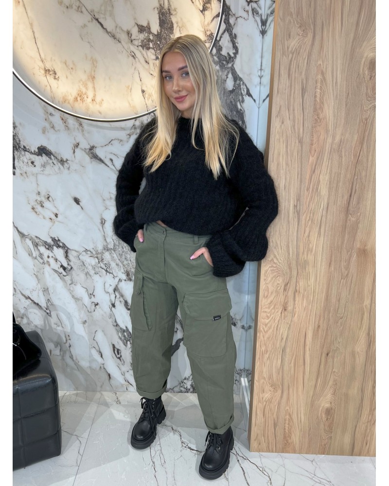 Model posiada klasyczny fason z praktycznymi kieszeniami typu cargo po bokach, które dodają im charakteru i zapewniają funkcjonalność. Spodnie mają lekko zwężane nogawki z możliwością podwinięcia oraz zapinane są na zamek i guzik w pasie.