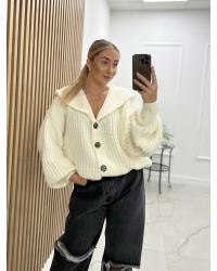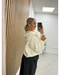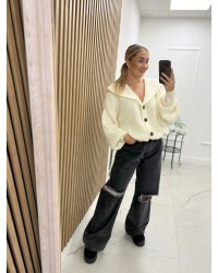 Ta stylizacja to połączenie wygody i nowoczesnego stylu w jednym. Luźny, ciepły sweter o wyrazistej fakturze zapewnia komfort noszenia, a jednocześnie podkreśla nonszalancki charakter zestawu. Zestawiony z lekką, warstwową spódnicą o modnym wzorze tworzy efektowną całość, która świetnie sprawdzi się zarówno w codziennych stylizacjach, jak i podczas nieformalnych spotkań.